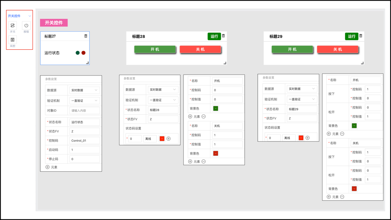 开关控件,是展示当前某开关变量的开关状态,或者可以直接操作,改变该变量当前开关状态的设计元素。