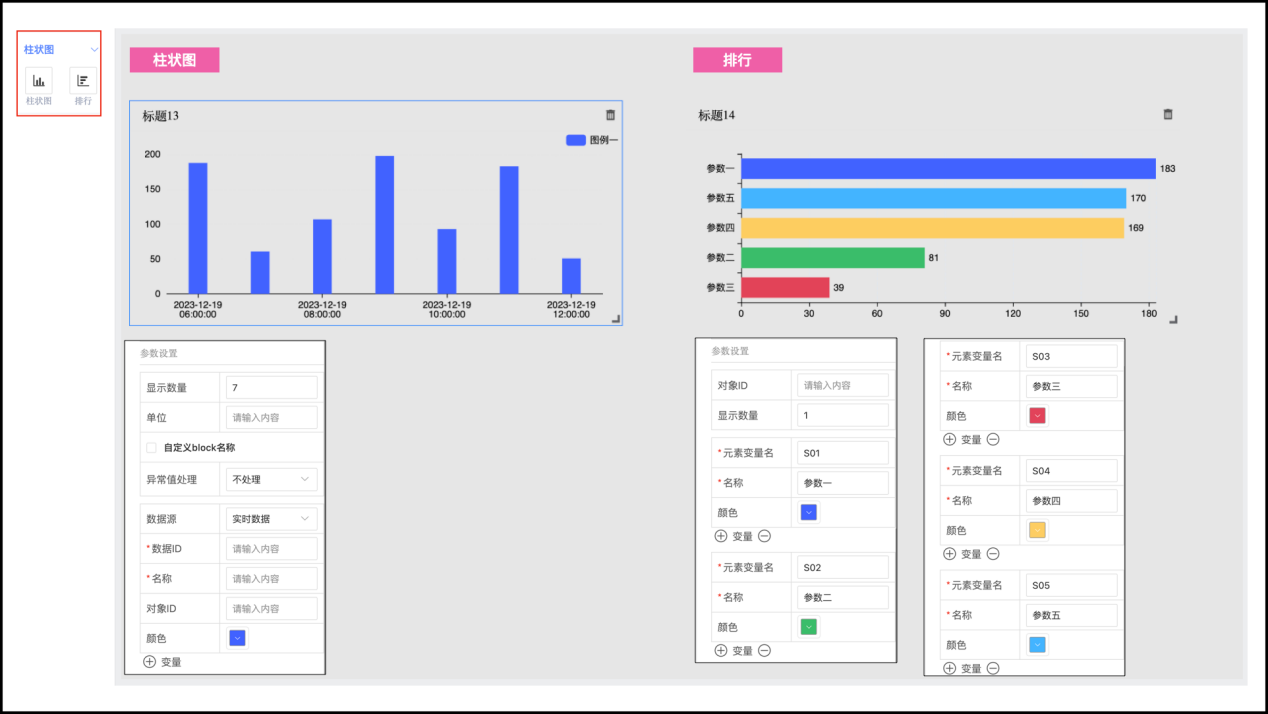 组态参数展现的样式目前支持的有:参数卡片、液位、信号灯、文本、数值,以及状态。组态参数的样式未来还会根据实际需要增加。