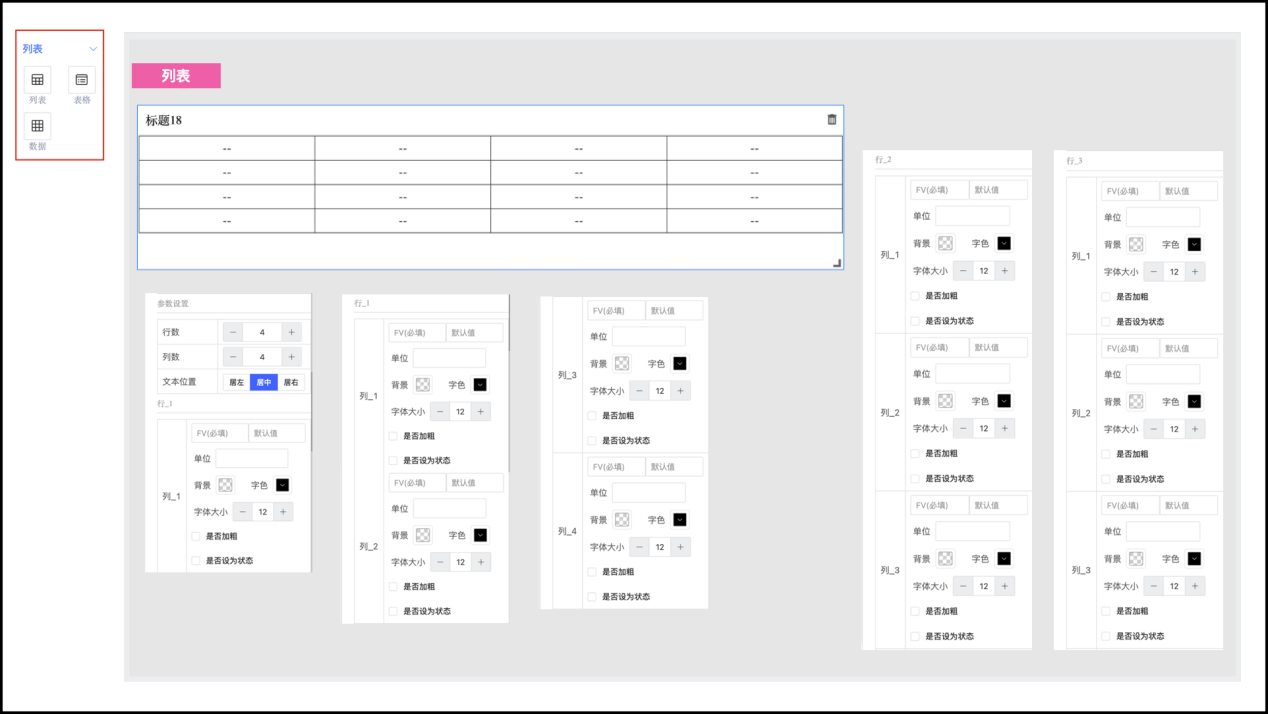每个卡片下面的对应内容,就是相关的设计元素属性设置。不同卡片元素所需要的属性设置项是不完全相同的。