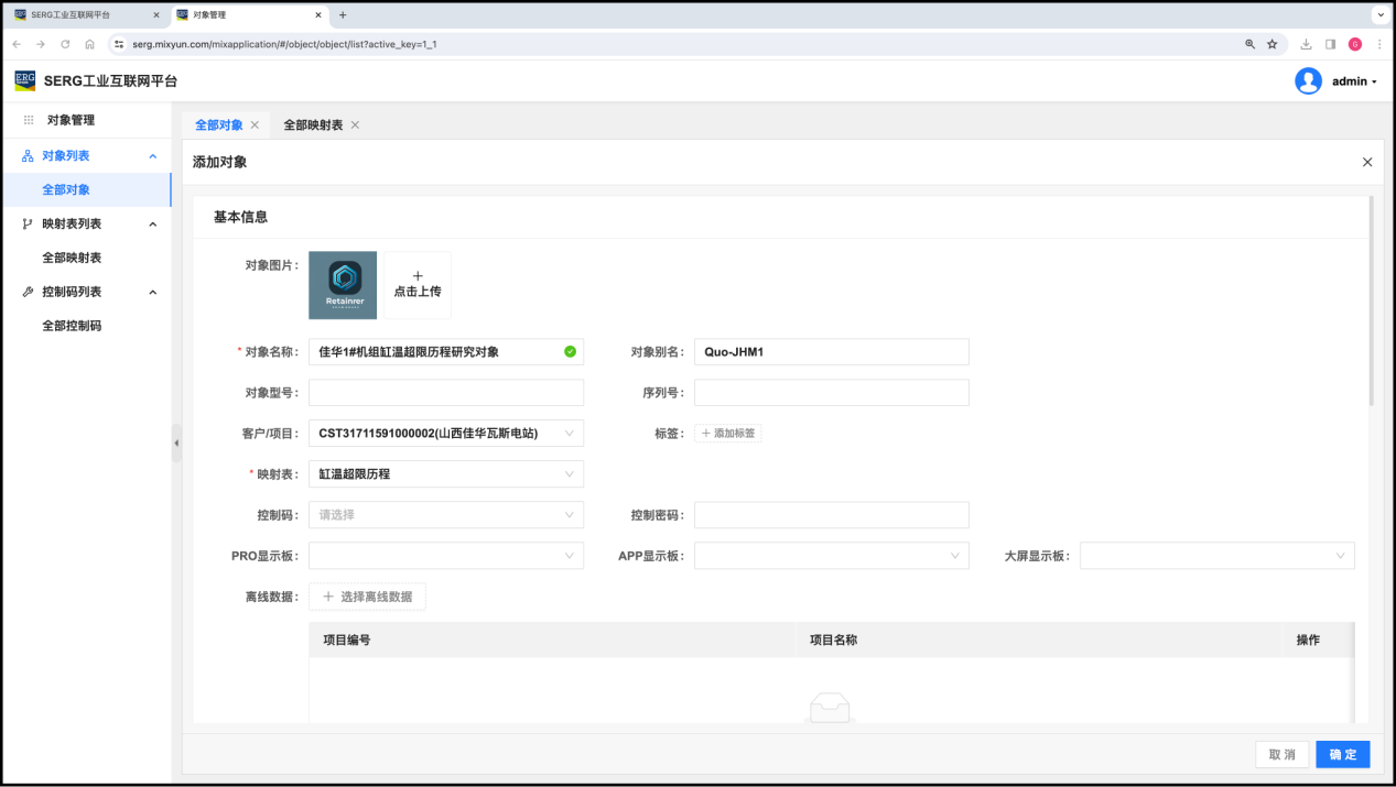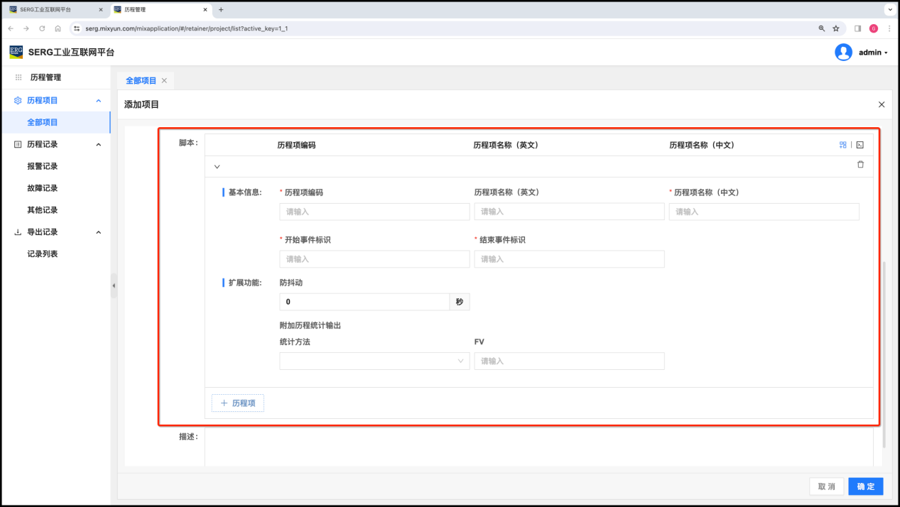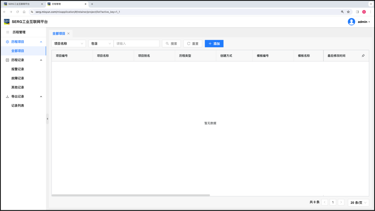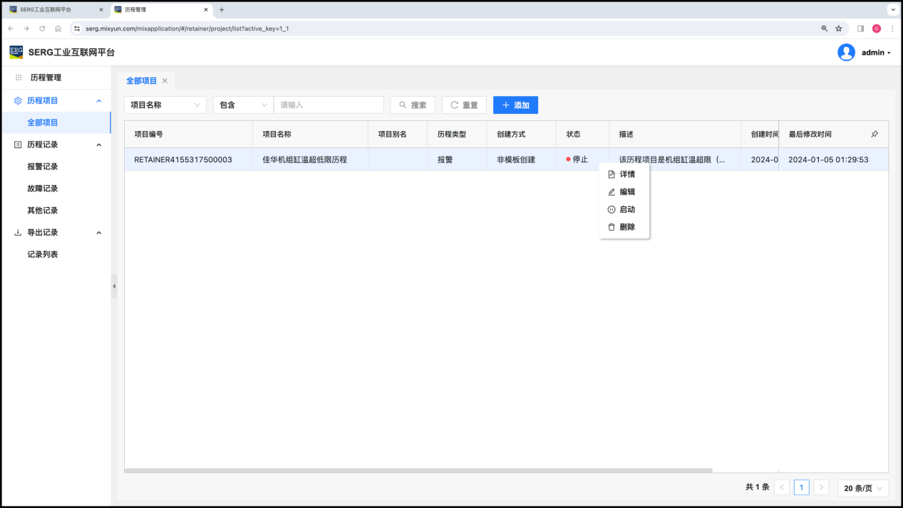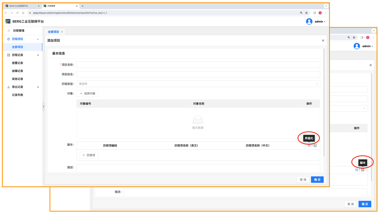有了缸温超限历程的研究对象,就可以开始创建历程项目了。进入 “历程项目” 版块,来创建历程对象: