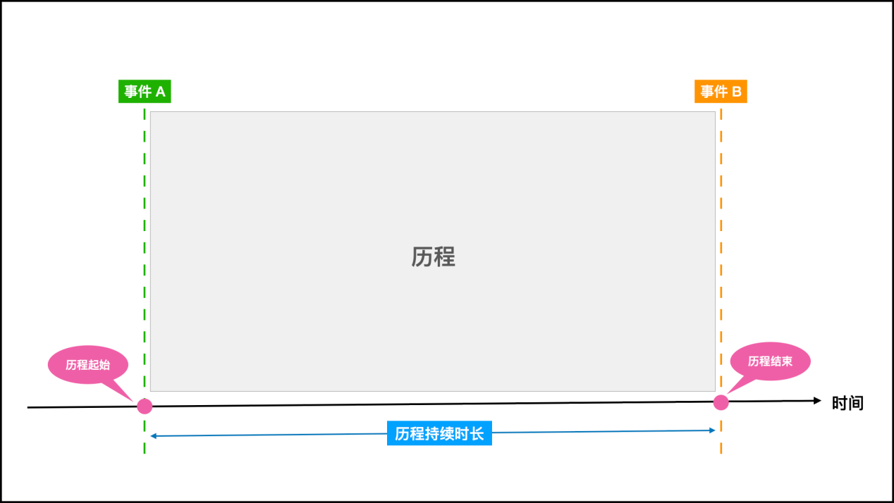 事件 A 和 B,是历程开始和结束的标志,这里说的 “事件”,是对象的事件。也就是说,对象的映射表里面需要有这个事件的定义。