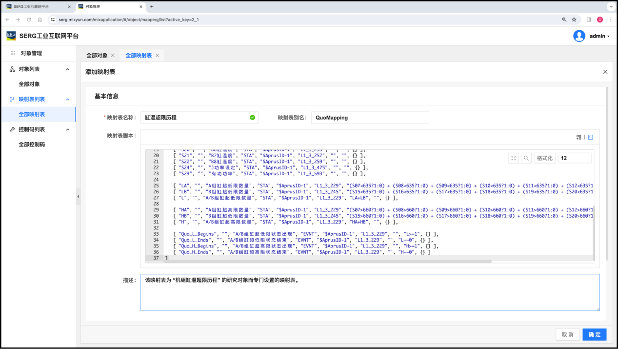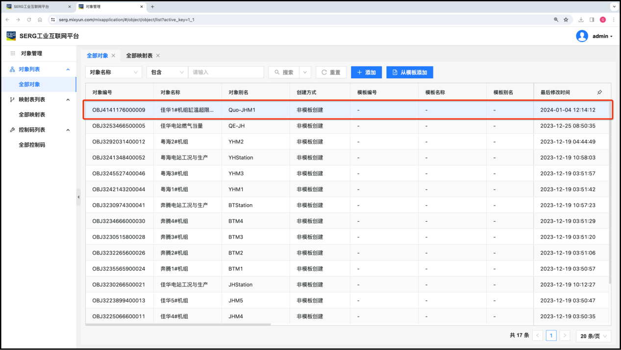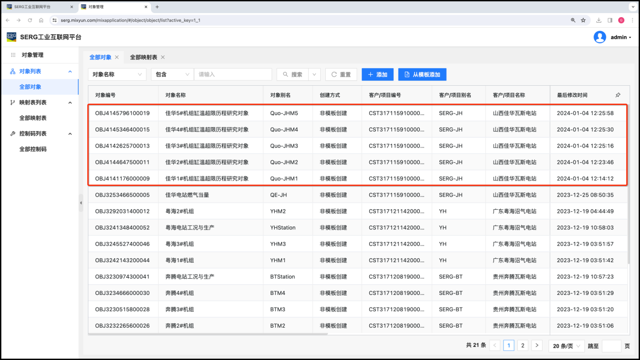 这个研究是要针对SERG集团旗下所有电站和所有机组的,所以,还需要为所有的机组创建历程研究对象。佳华电站的机组,都可以使用相同的映射表: