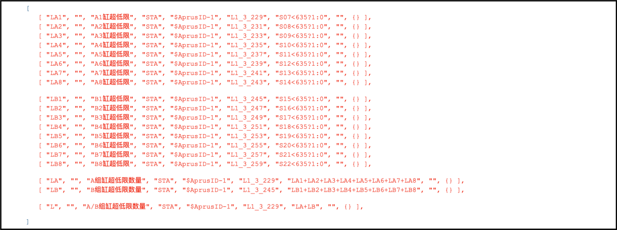 LA/LB,分别代表A组/B组气缸超低限的个数;