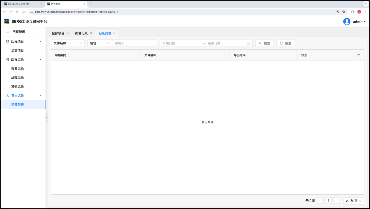 “历程管理” 应用有三个菜单版块,分别是:历程项目、历程记录、和导出记录。