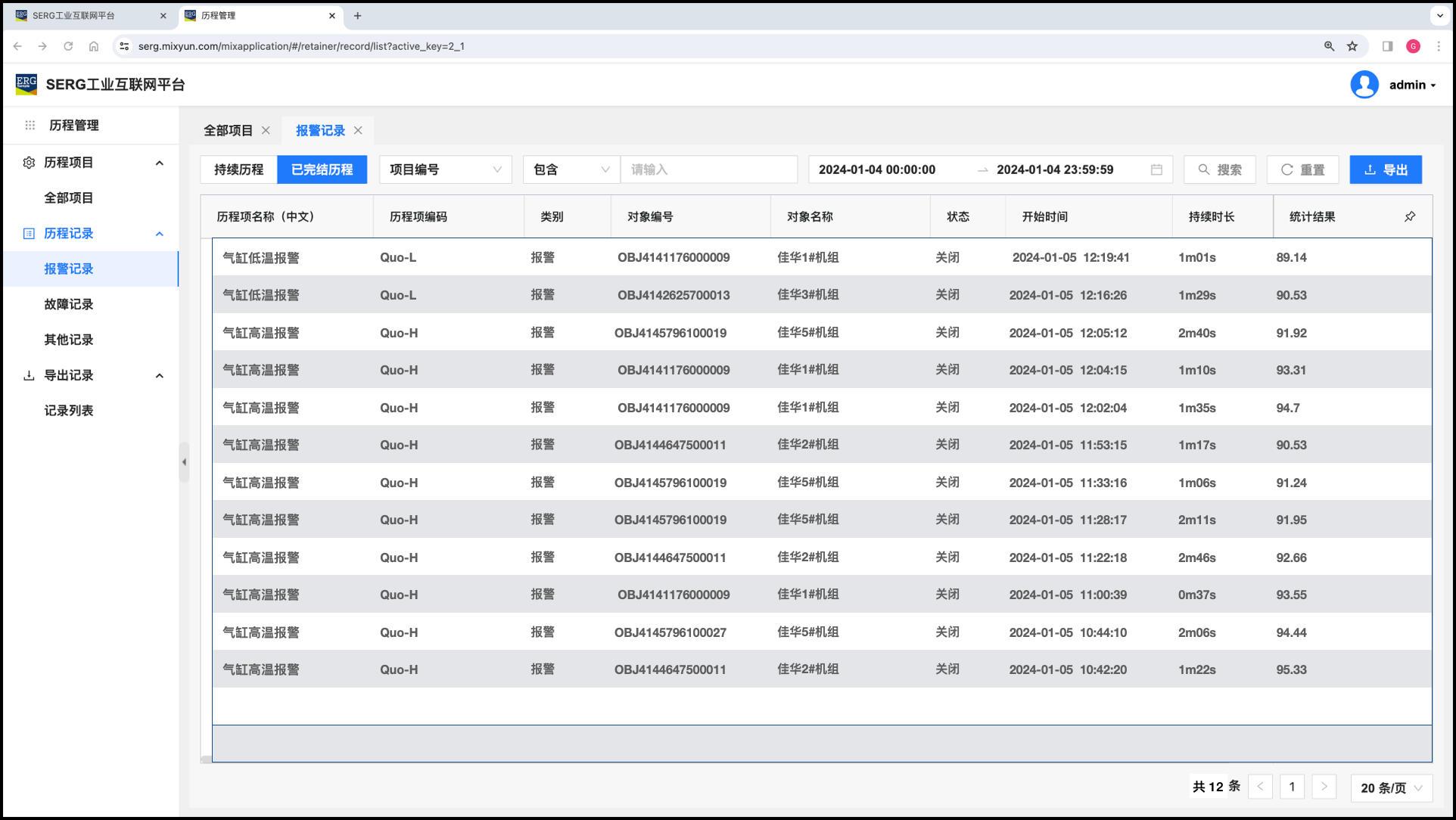 同理,我们可以创建一个 “气缸高温报警” 的历程项: