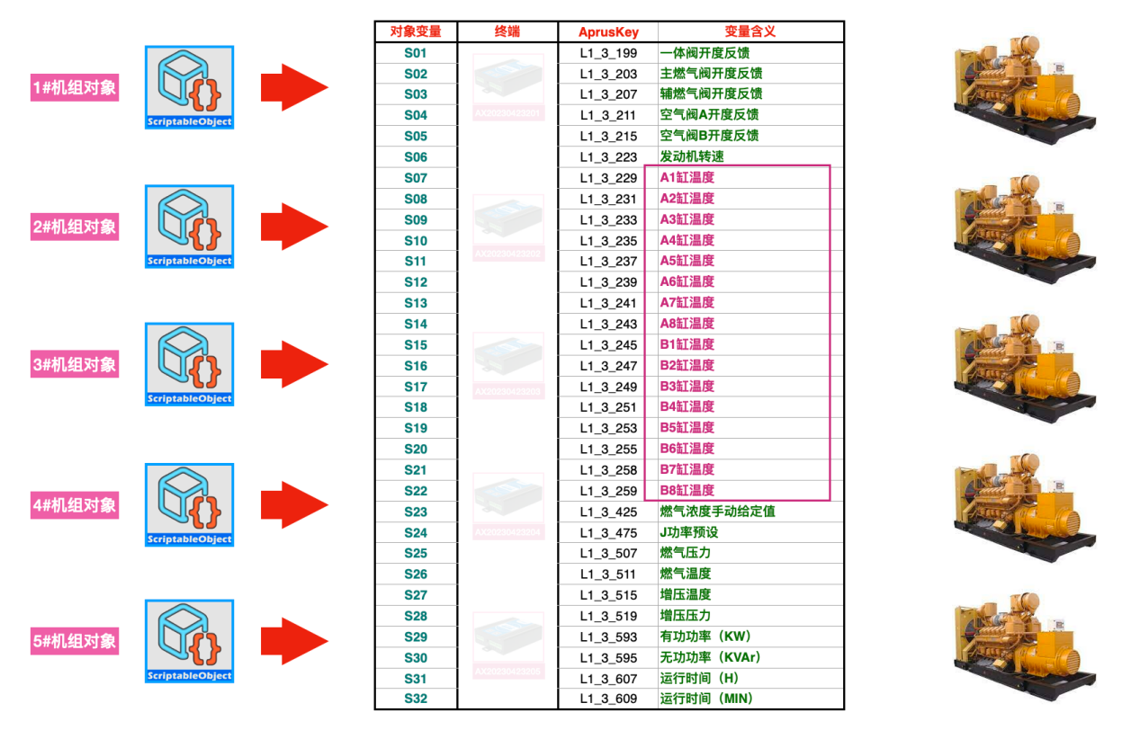 这是我们之前就定义好的机组对象,该对象的映射表是这样的: