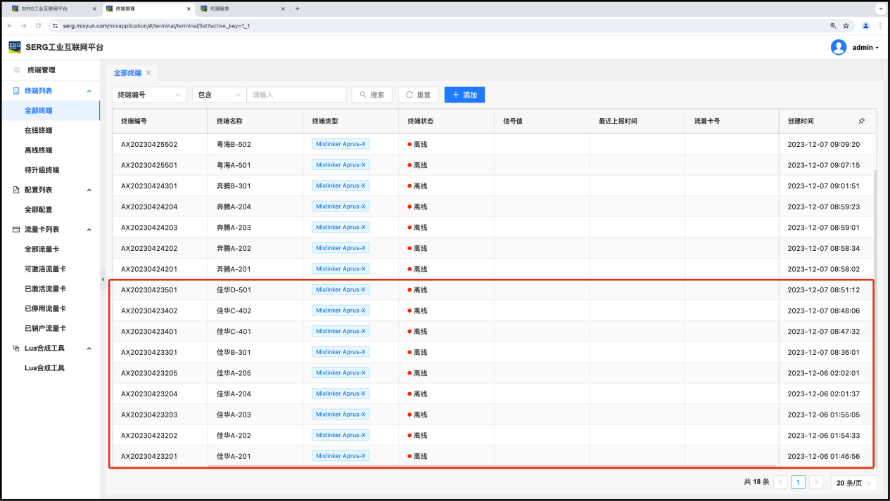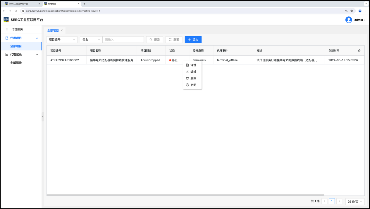 这个代理服务,只针对 “佳华电站” 的数据终端,我们可以通过增加一个代理条件 “终端名称包含佳华” 来实现这个目的,因为佳华电站的终端的名字都包含有“佳华”字样: