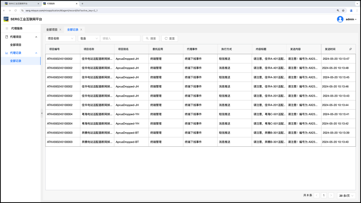 所有的代理执行都可以在 “代理记录” 板块里面看到: