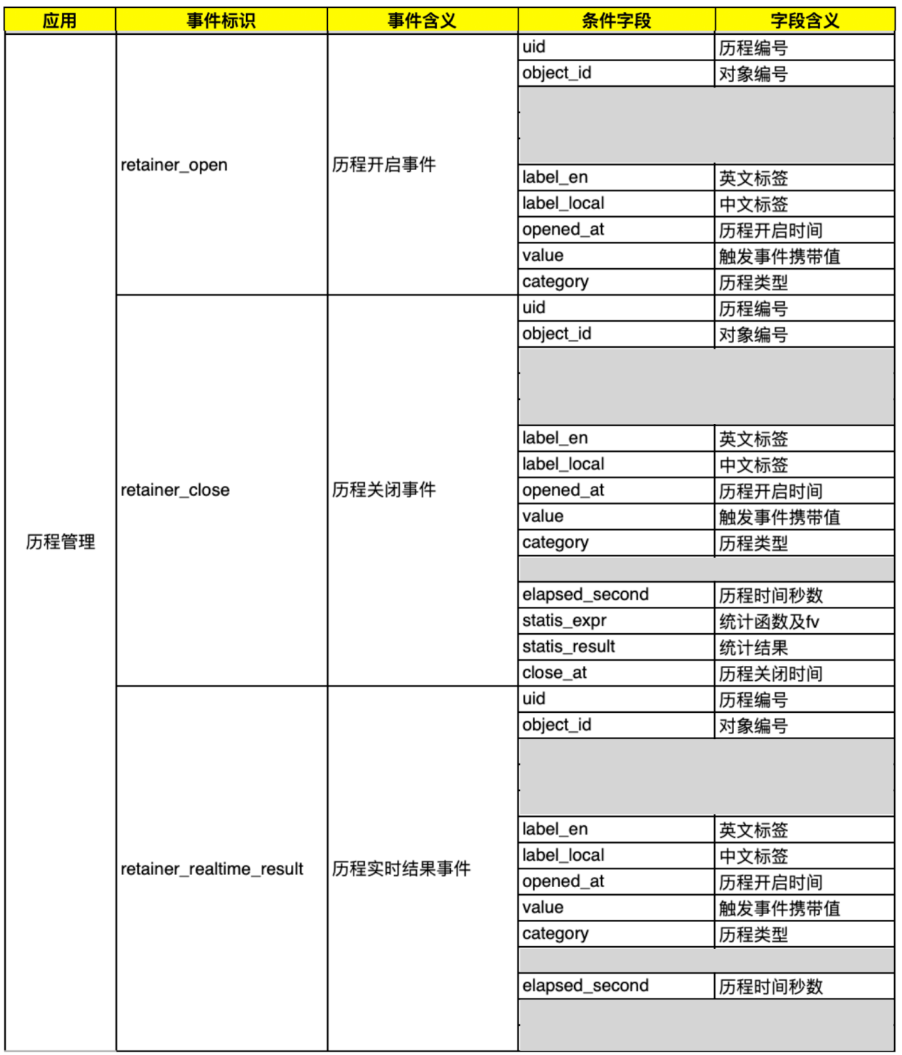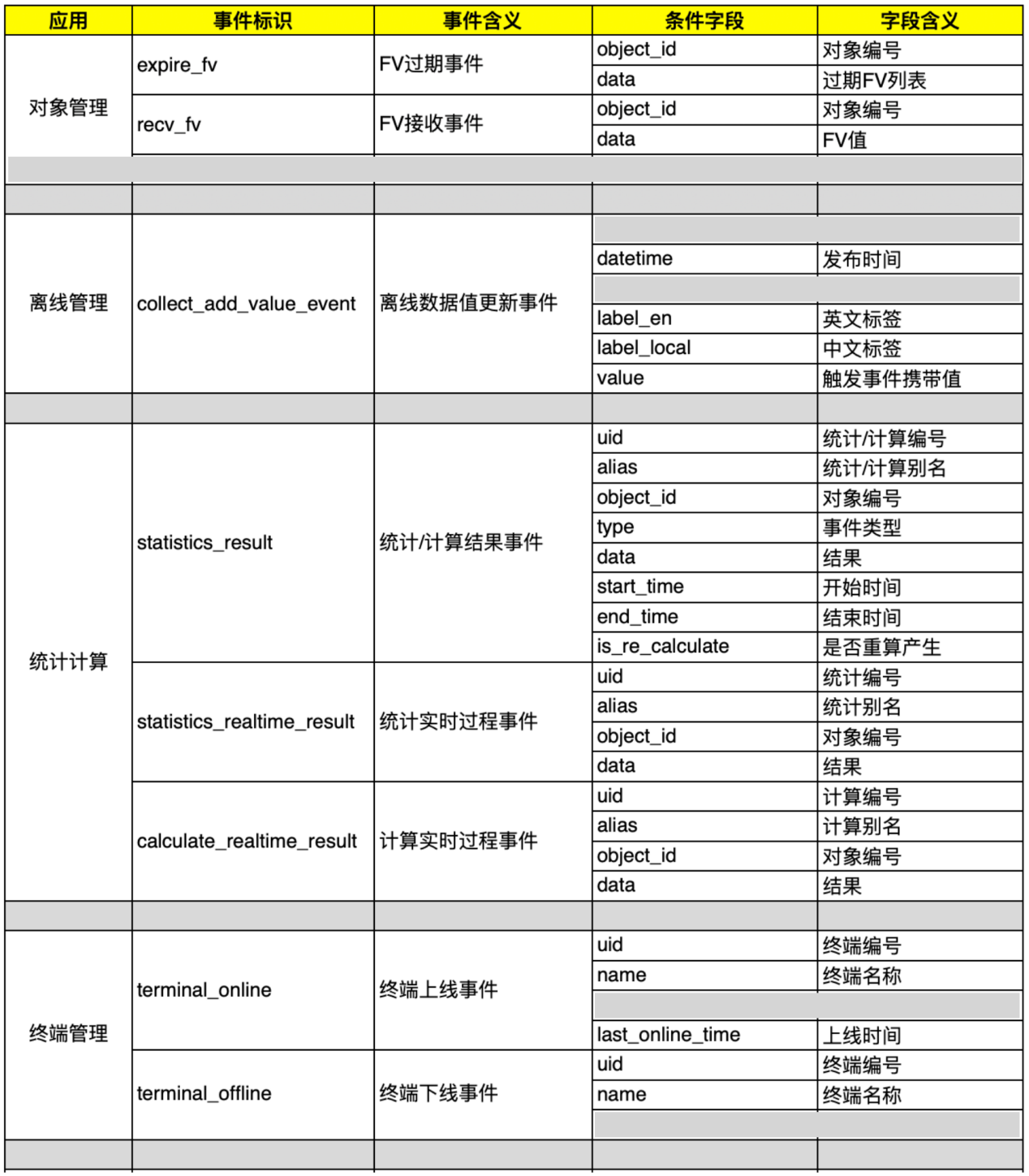 不同的委托应用以及不同的代理事件,都有哪些跟代理事件相关的字段呢?可以参考如下的《代理事件字段表》: