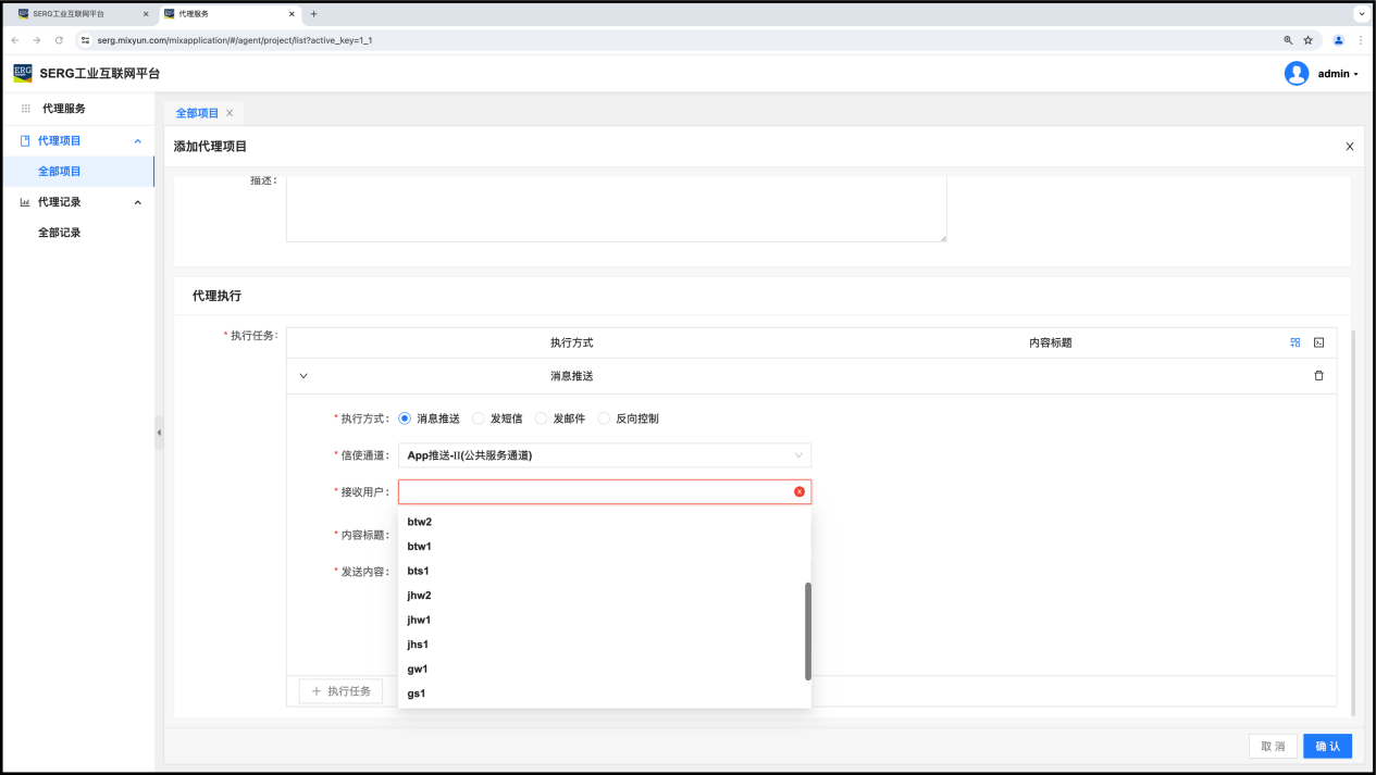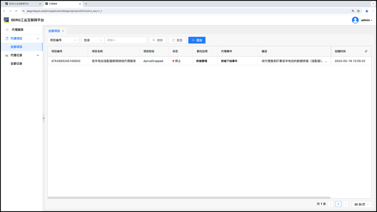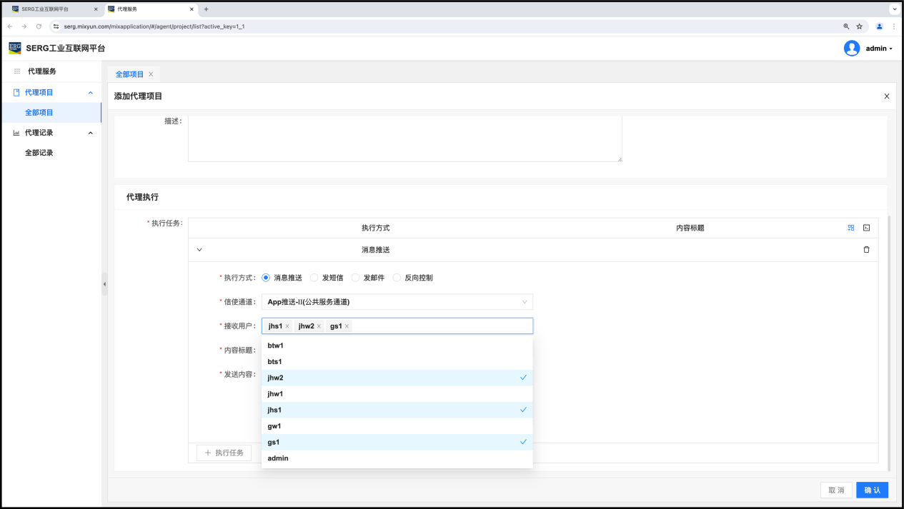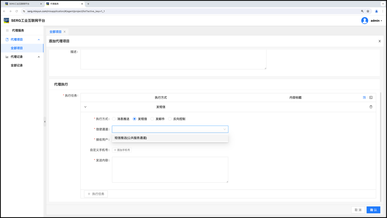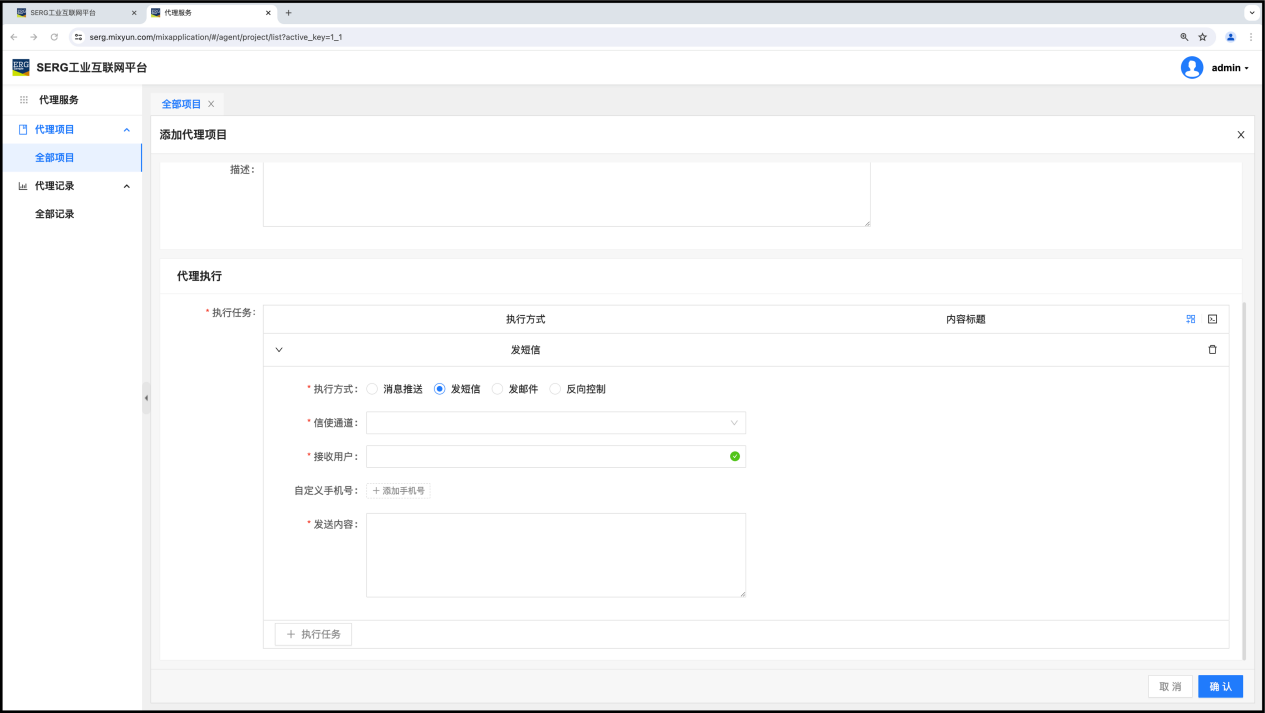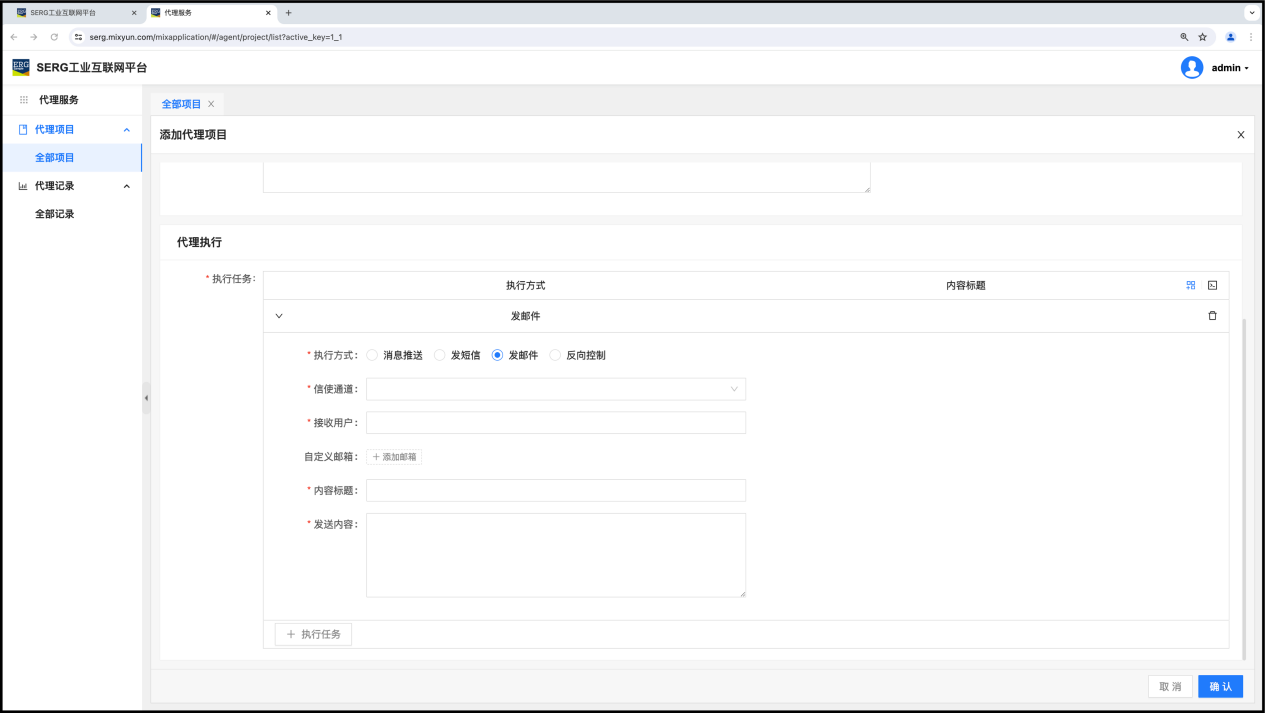 “代理服务” 应用有两个板块,“代理服务项目” 板块和 “代理记录” 板块。代理服务项目板块是管理代理服务项目的;而代理记录板块是记录代理执行结果的。