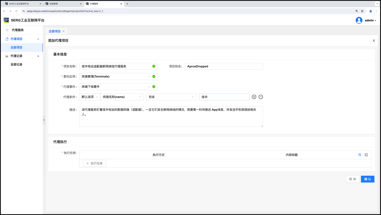 保存后,这个为佳华电站数据终端掉线的这个代理就算完成了。