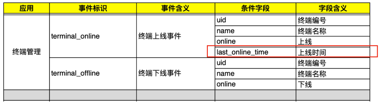 对 “终端管理” 应用委托的代理服务来说,代理事件只有两项可以选择:“终端上线” 事件和 “终端下线”事件。