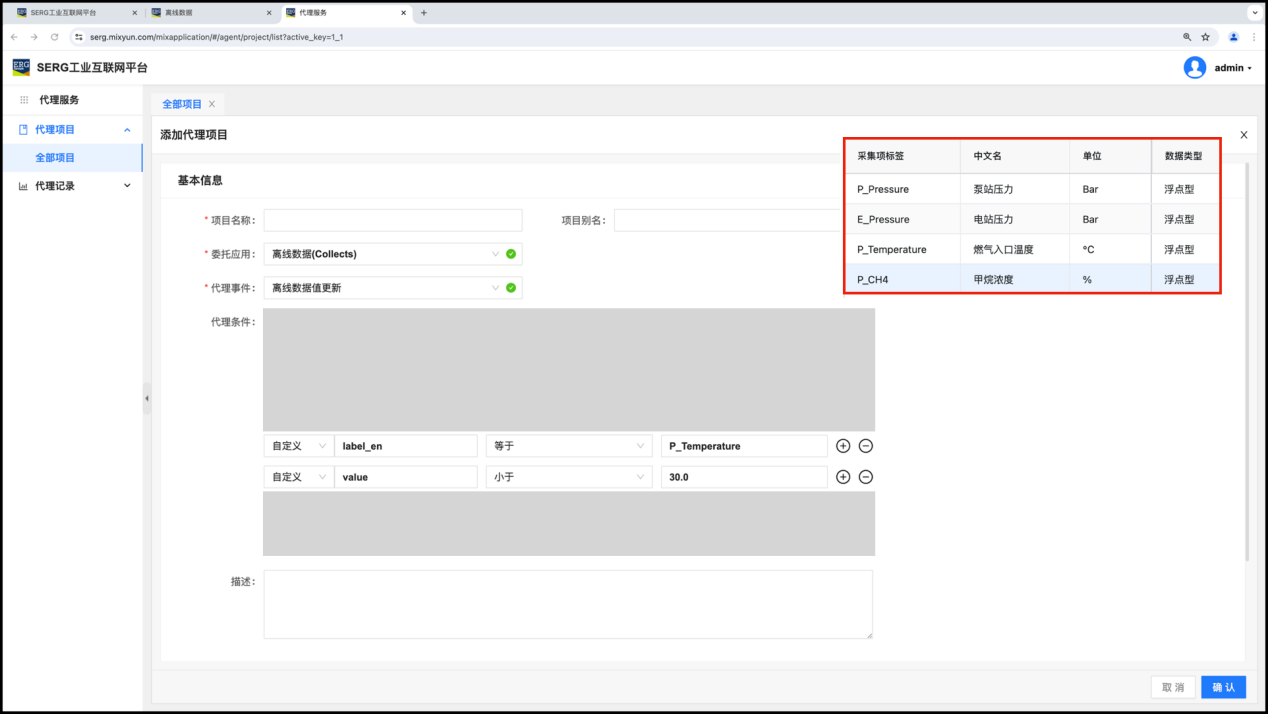 下图这个代理条件的意思是 “离线采集的数据 泵站入口燃气温度 小于 30℃的时候”: