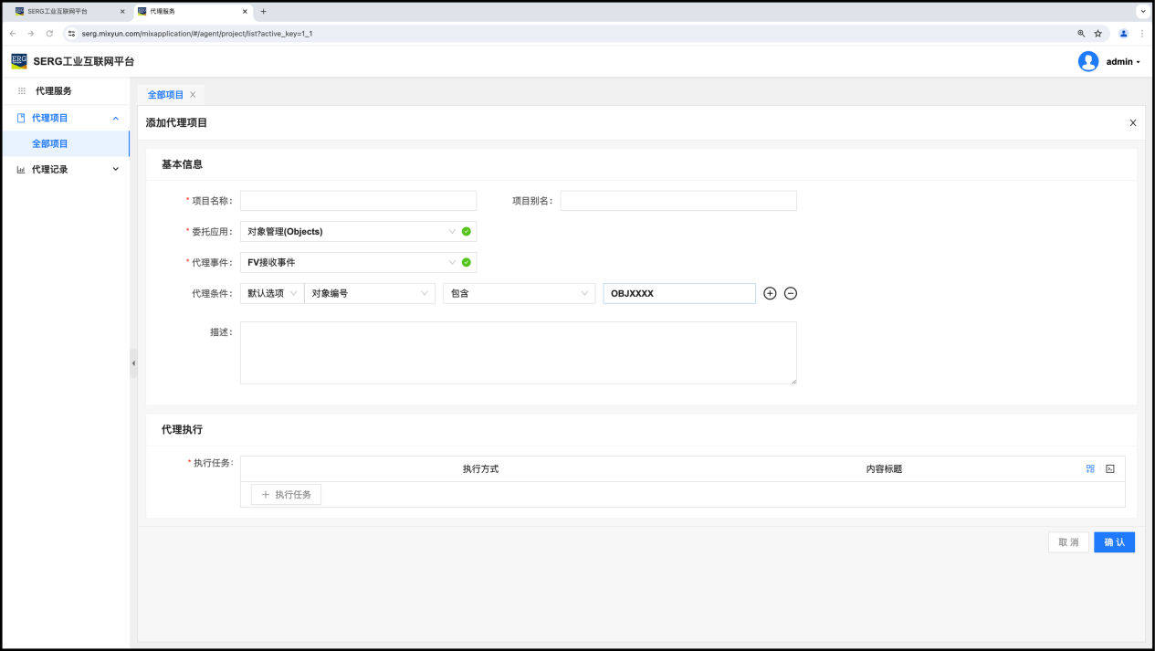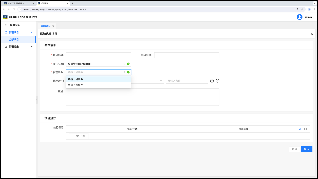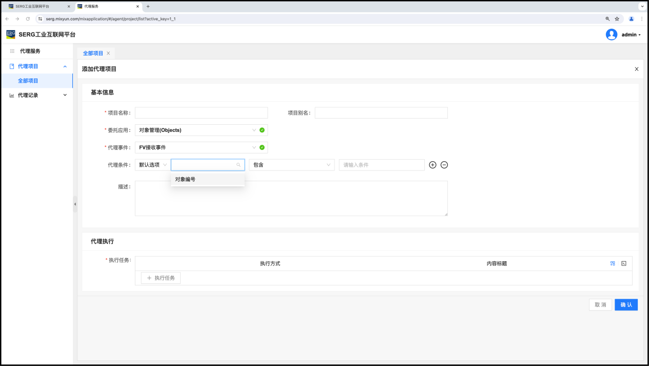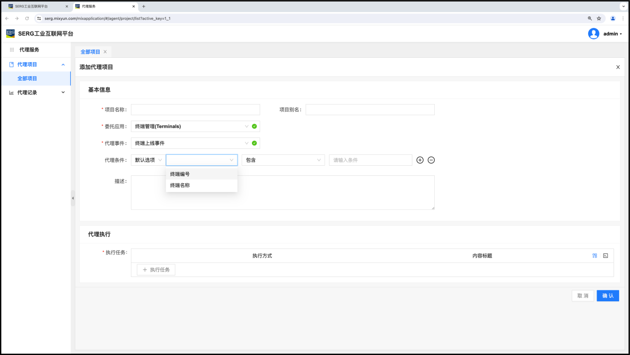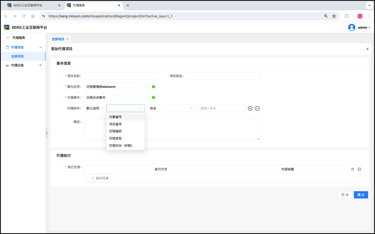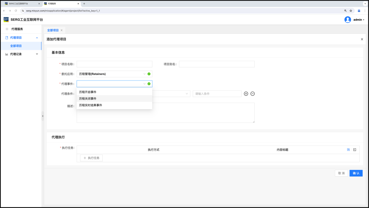 如果需要对历程进行更精准的代理,就可以增加代理条件。其中,历程类型可以是在创建历程项目时候所设置的类型,如故障历程、报警历程等等。
