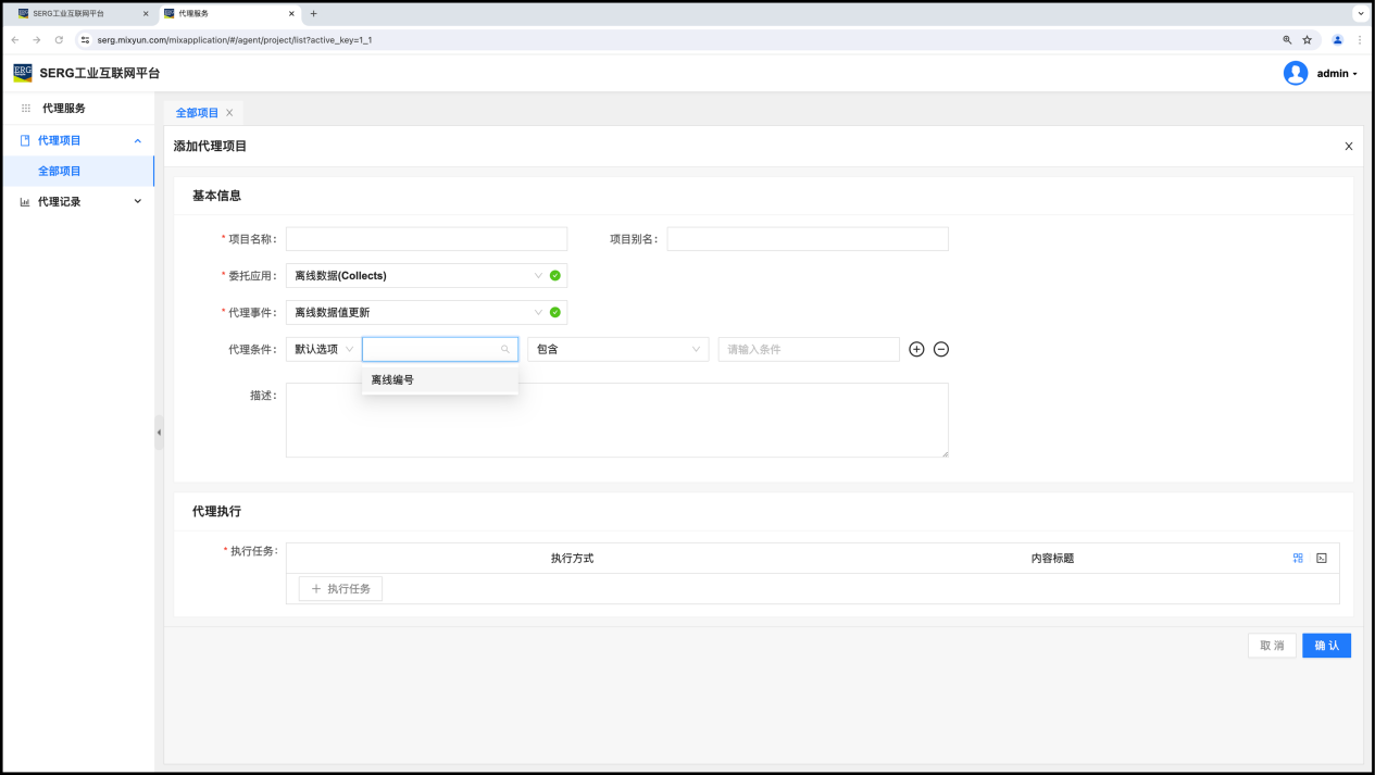 我们也可以默认条件 “离线编号” 去指定某个特定的离线项目作为代理条件:
