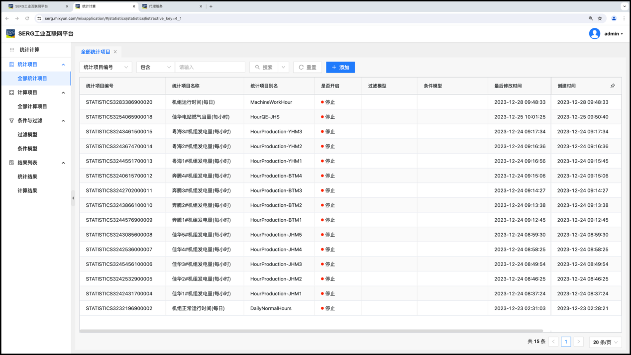 比如,编号为 “STATISTICS3242431700004” 的统计项目是 “佳华1#机组发电量(每小时)”,这是一个每小时发电量的统计,也就是 “每小时出一次统计结果” 的统计项目。