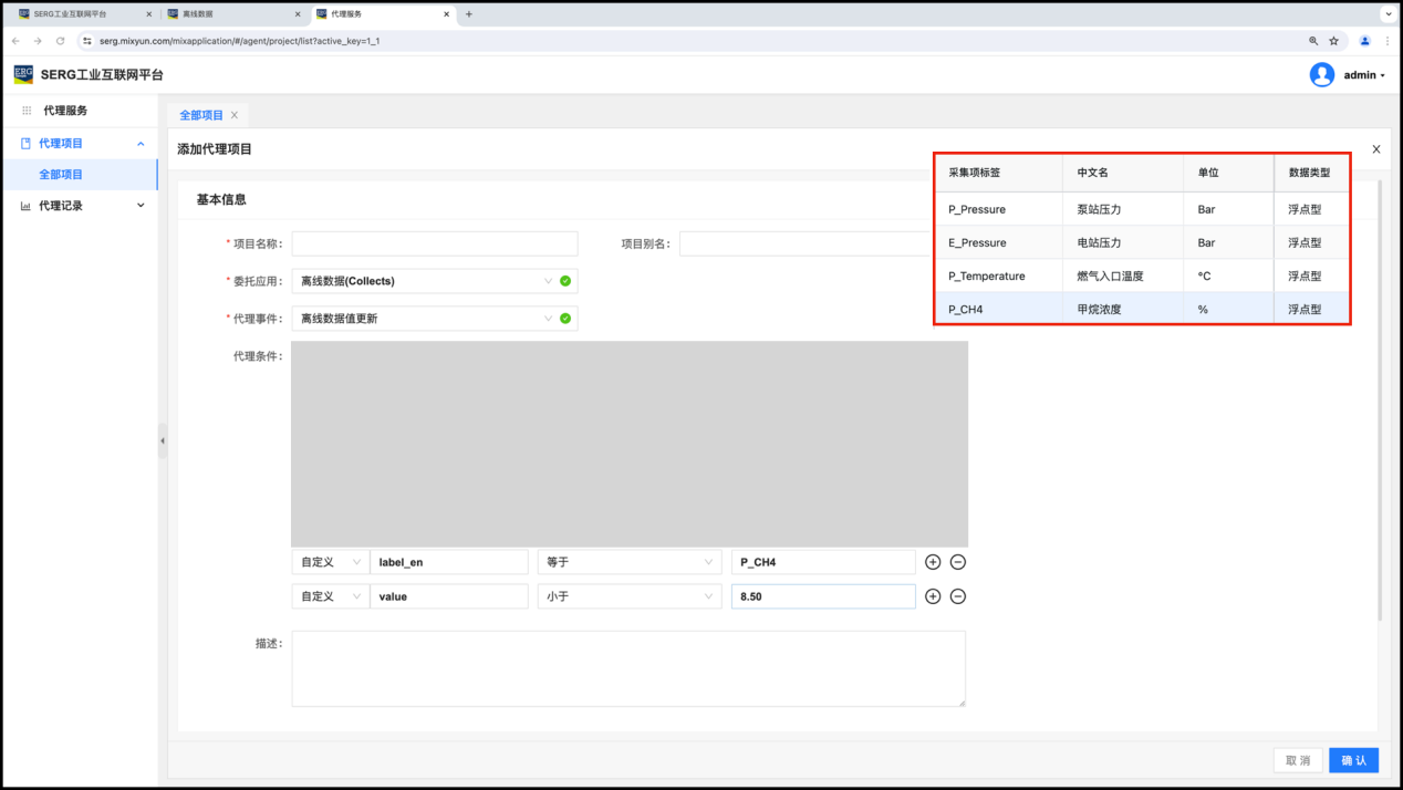 下图这个代理条件的意思是 “离线采集的数据 甲烷浓度 小于8.5%的时候”: