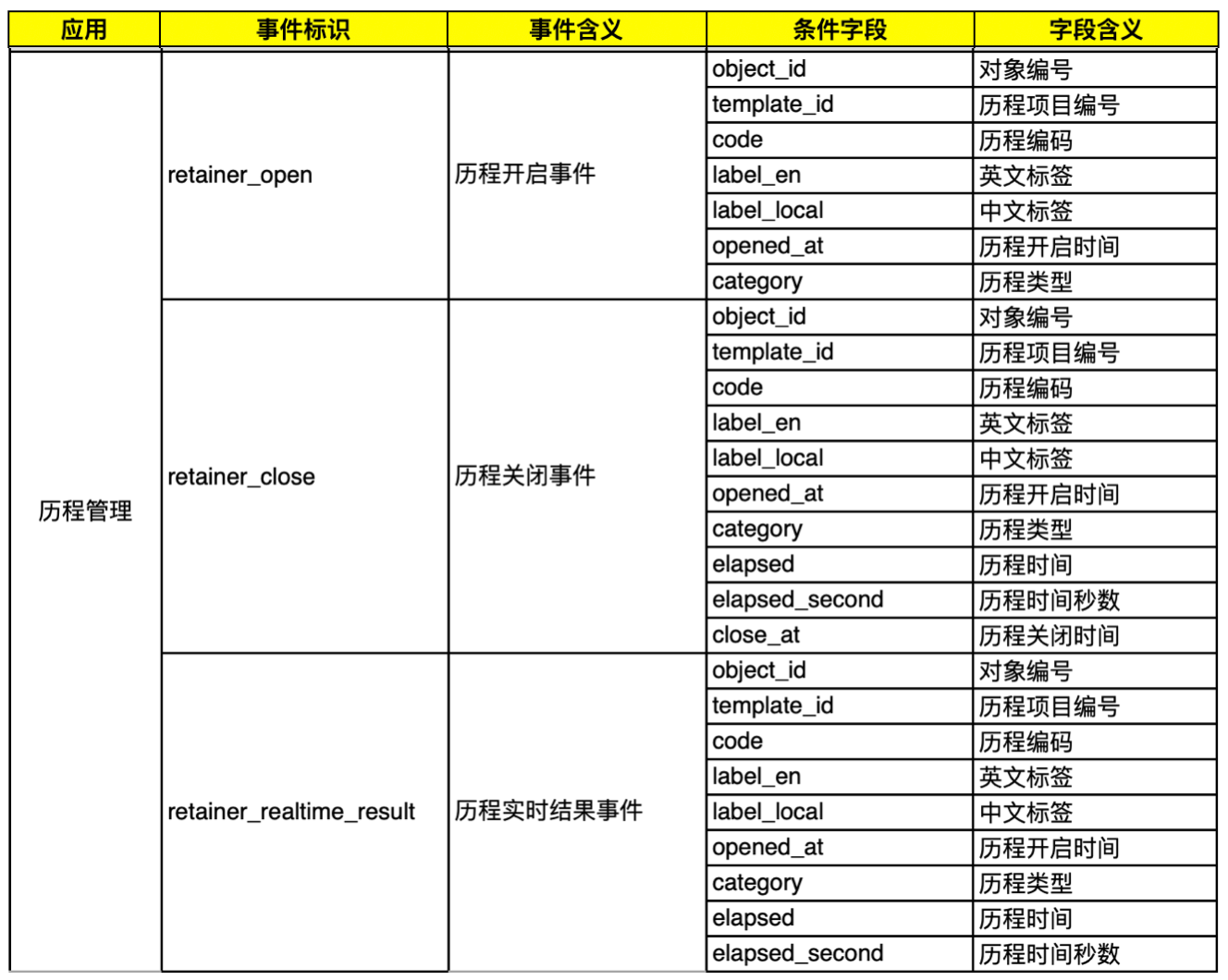 “历程管理” 应用可以代理的事件有三个,分别是:历程开始、历程结束和历程实时结果:
