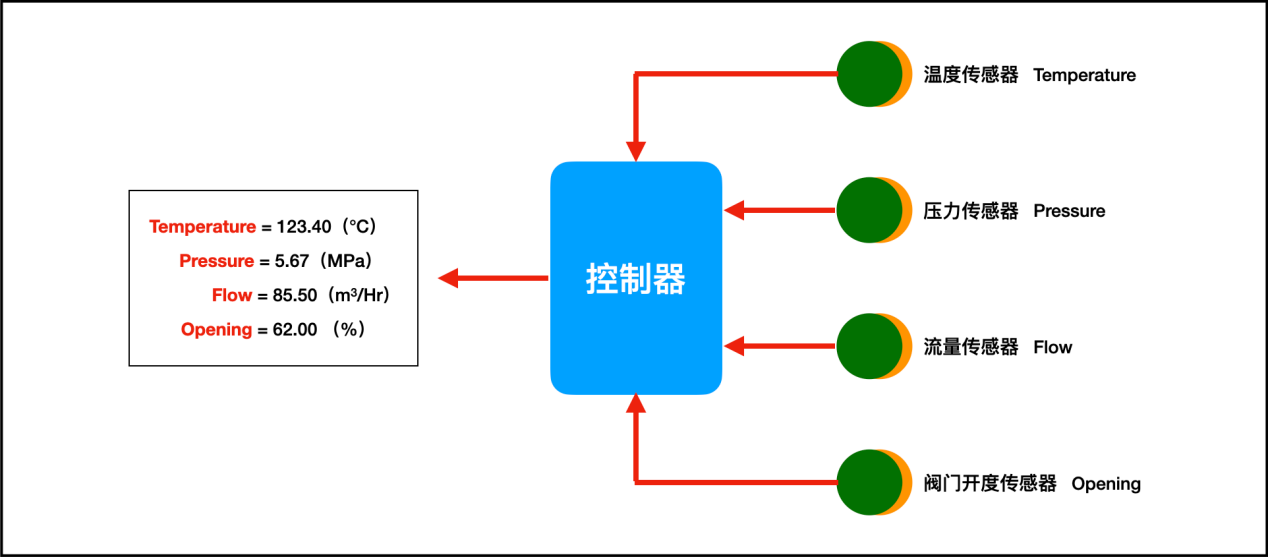 我们获得的设备数据,都来自设备控制器,而这些数据实际上都来自对应的传感器, 比如温度传感器、压力传感器、流量传感器、阀门开度传感器。