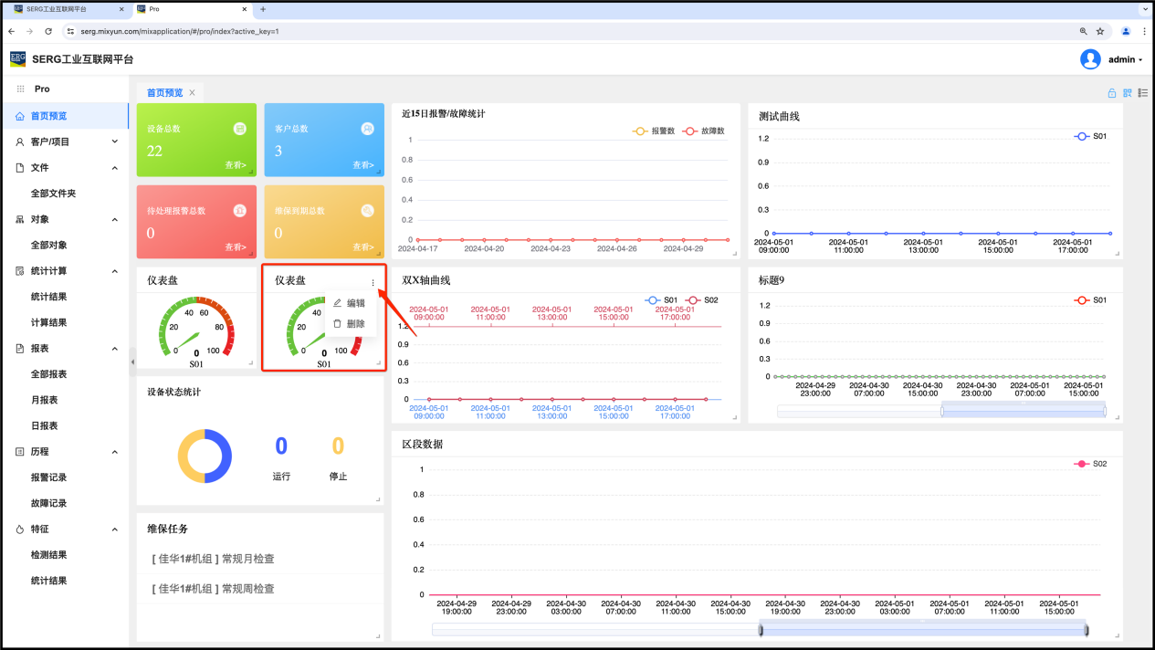 鼠标指向需要编辑的组件(右上角),点击出现的点,就会弹出该组件的两个相关操作:编辑或删除。