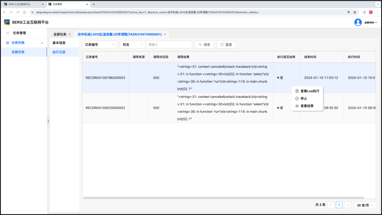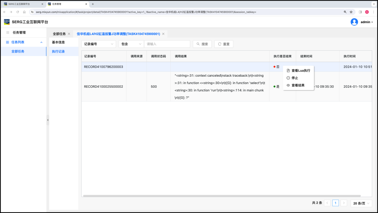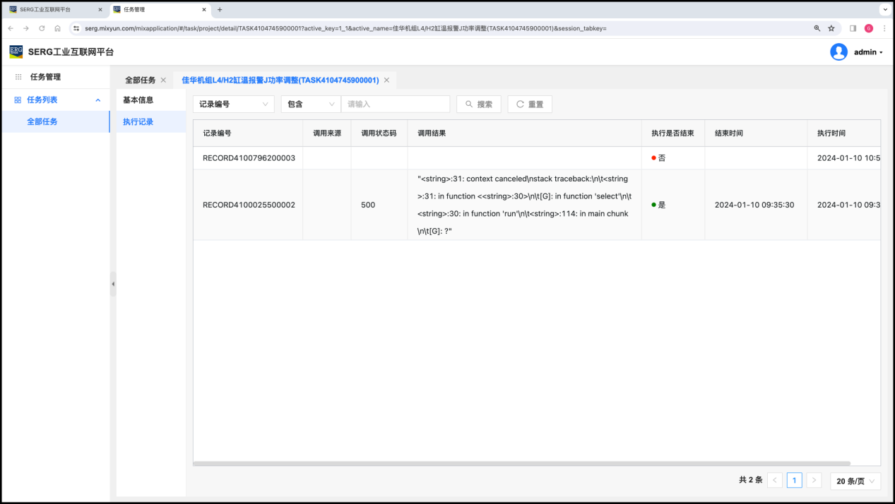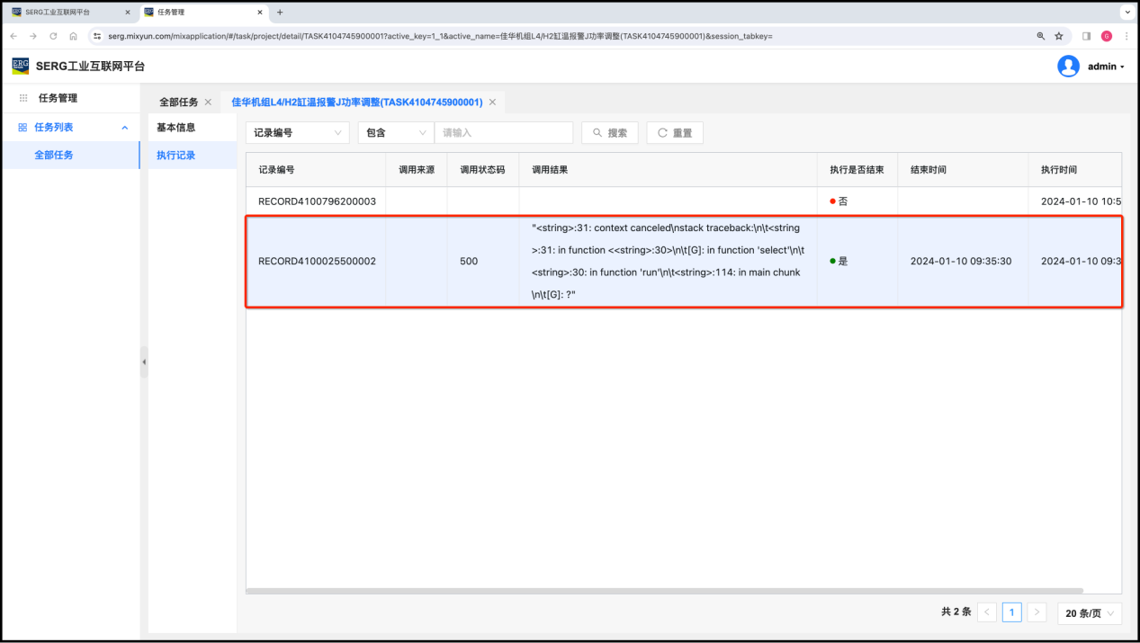 除了查看基本信息,还可以查看这个任务的执行记录: