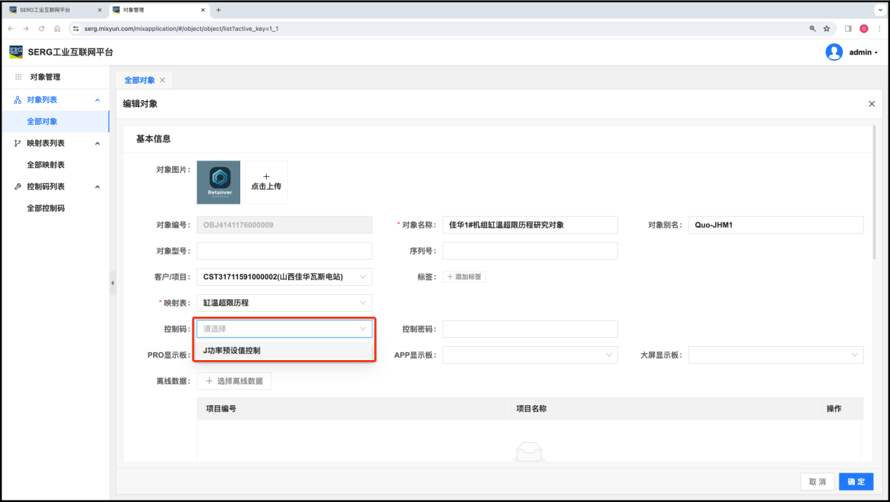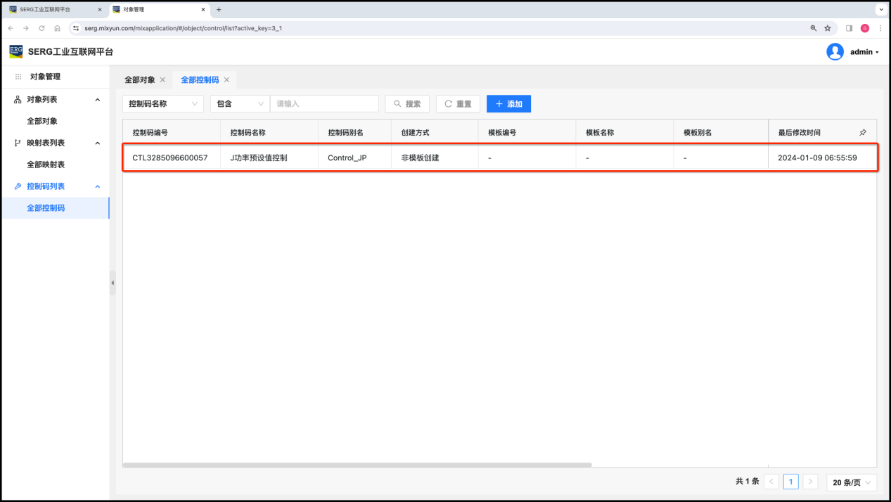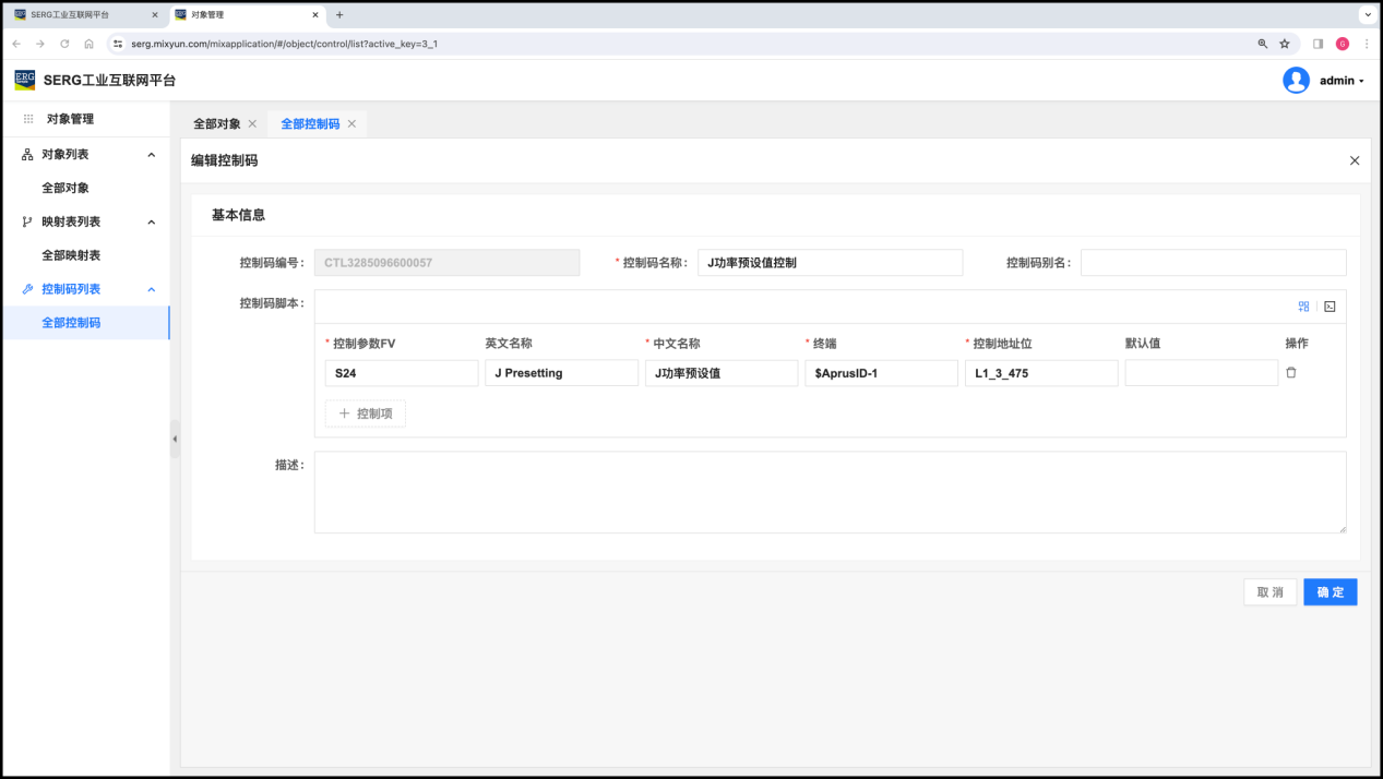 打开“对象管理”的“控制码”版块,里面实际上已经有一个“J功率设定值”的控制码: