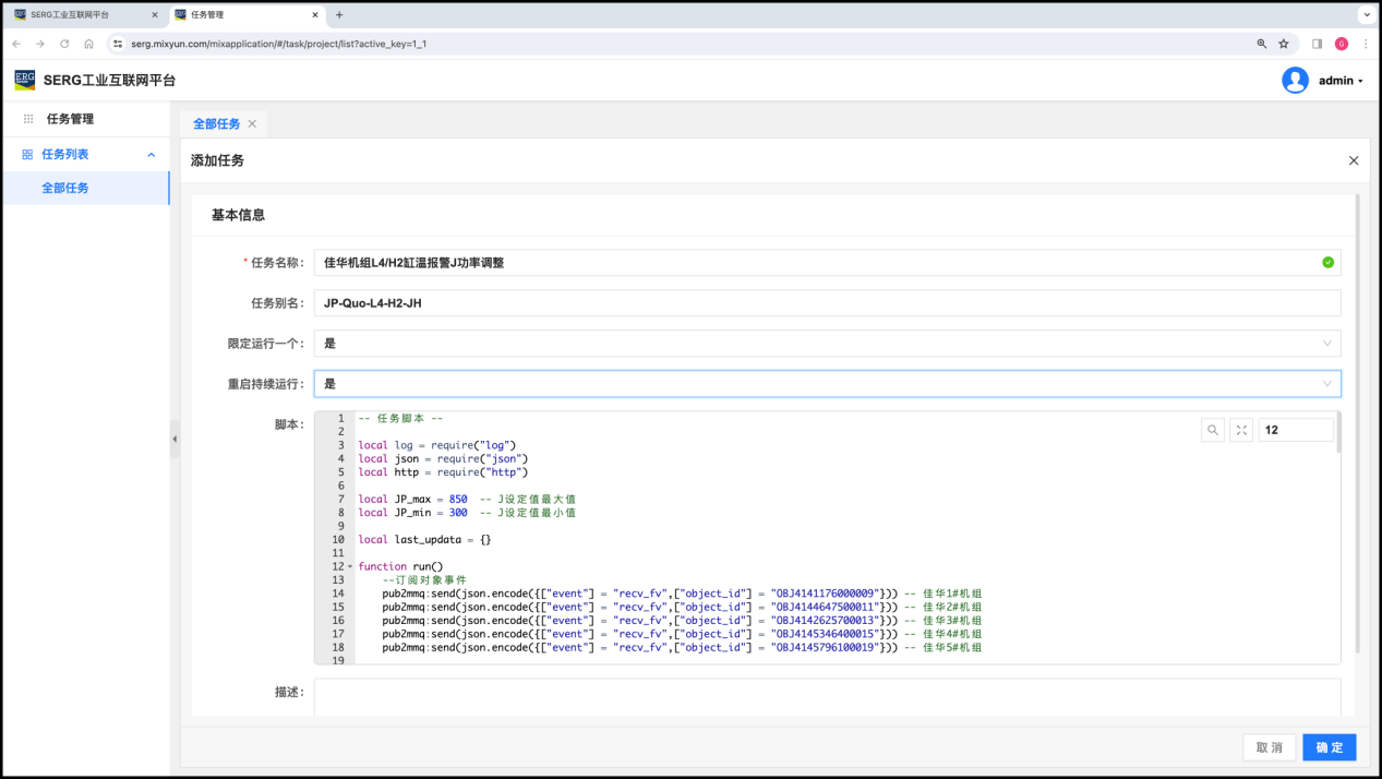 实际上,我们只需要创建1个任务,同时对应佳华1#~5#机组。