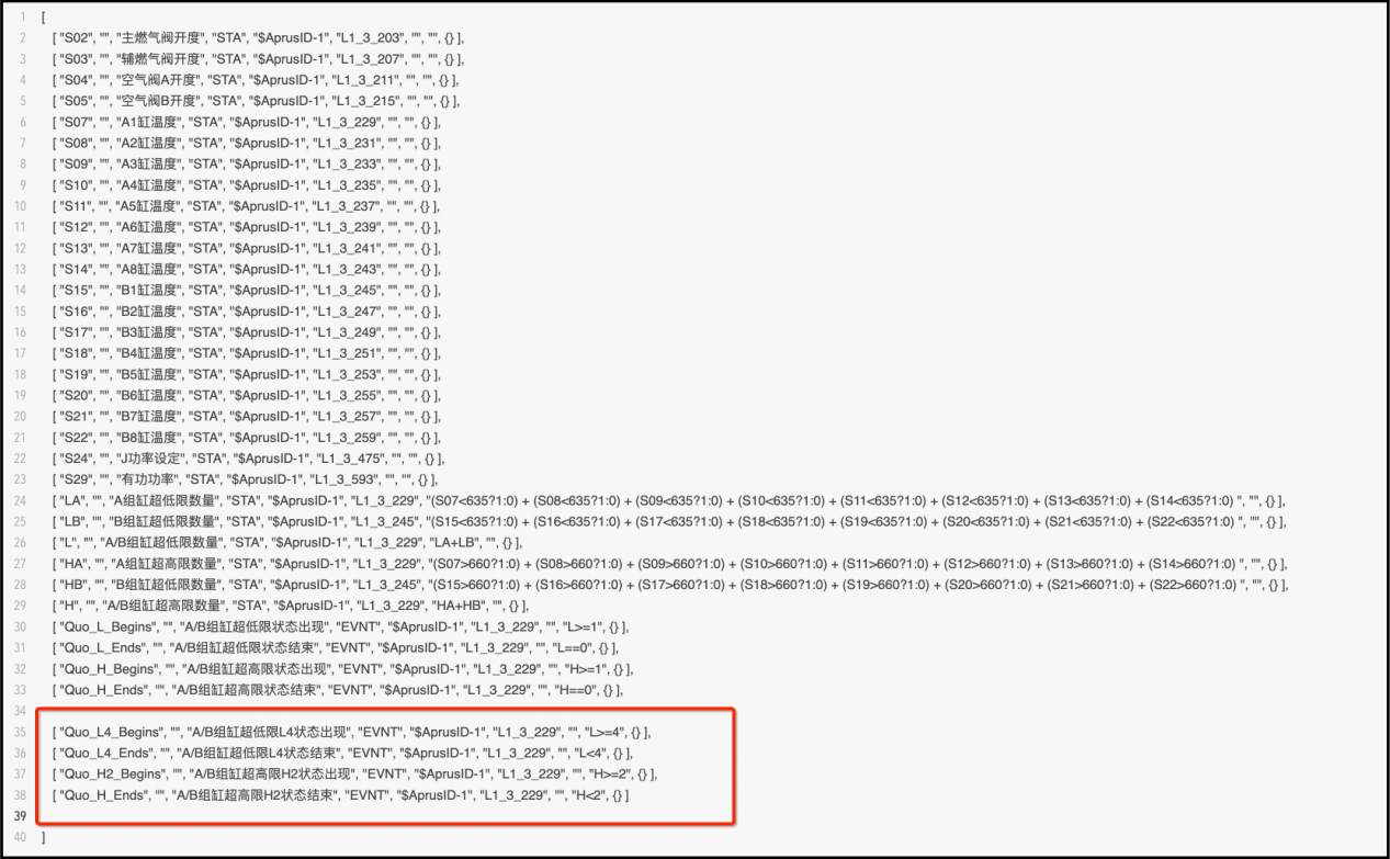 14~18行,是第一部分,意思是要读取指定的 “1#~5#机组缸温超限历程研究对象” 的变量数据。