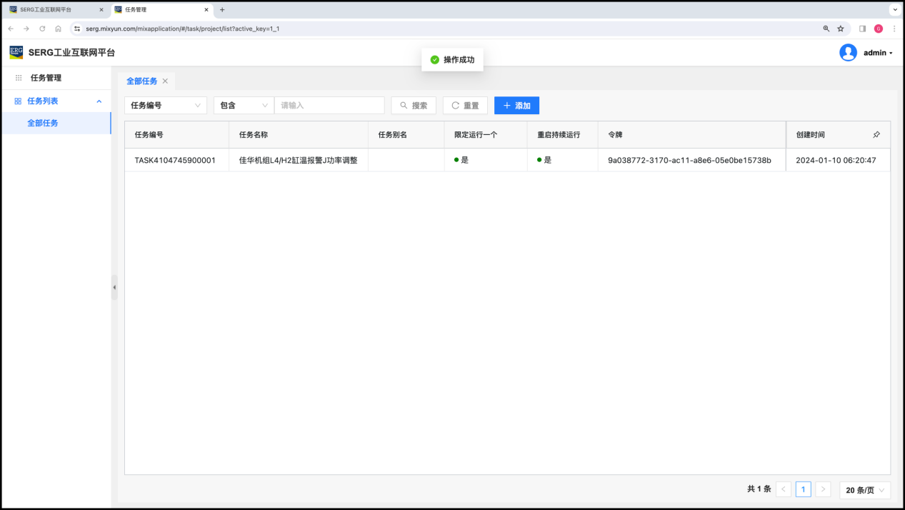 成功执行后,会收到 “操作成功” 的提示,说明这个任务就进入了执行状态。
