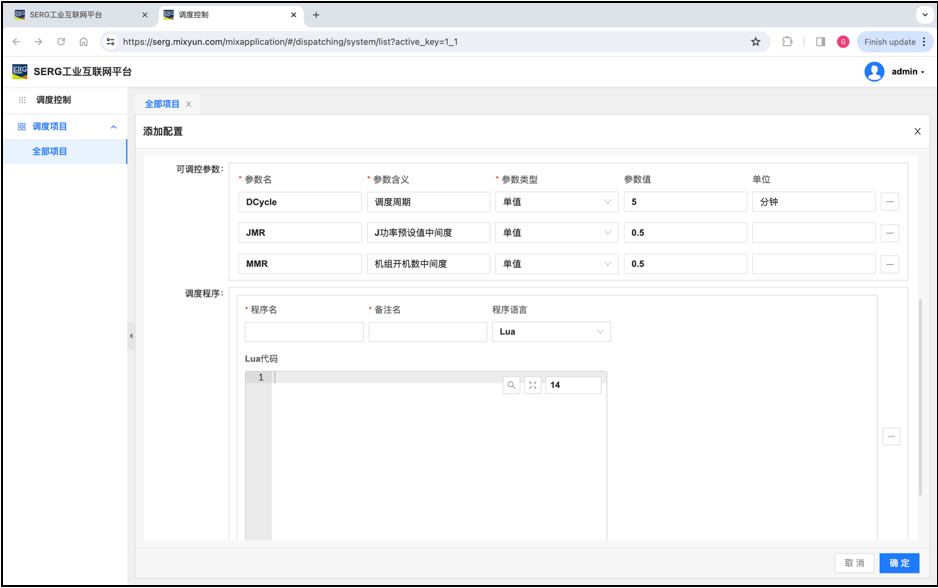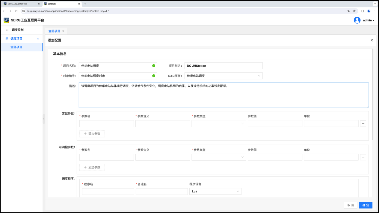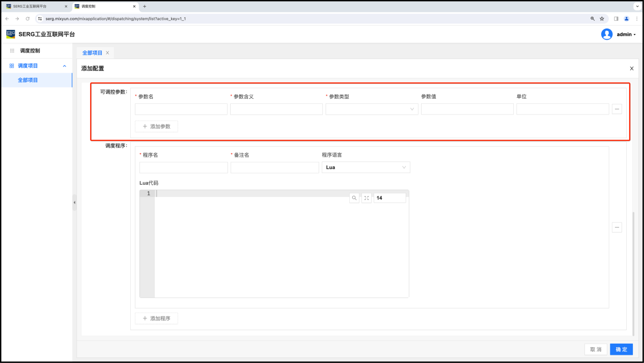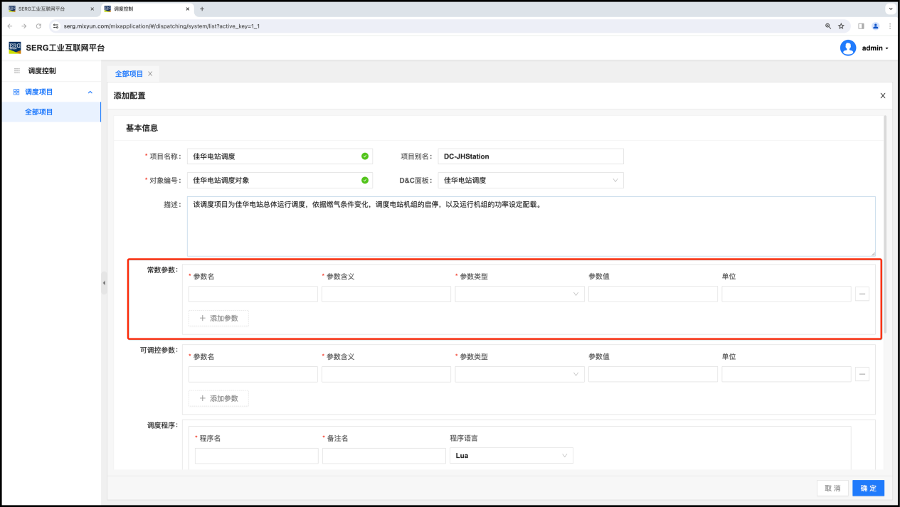 在 “调度控制” 应用中,MixIOT Lua 也可以读取本调度项目的常数参数和可调控参数,这些都有规范的使用方法。