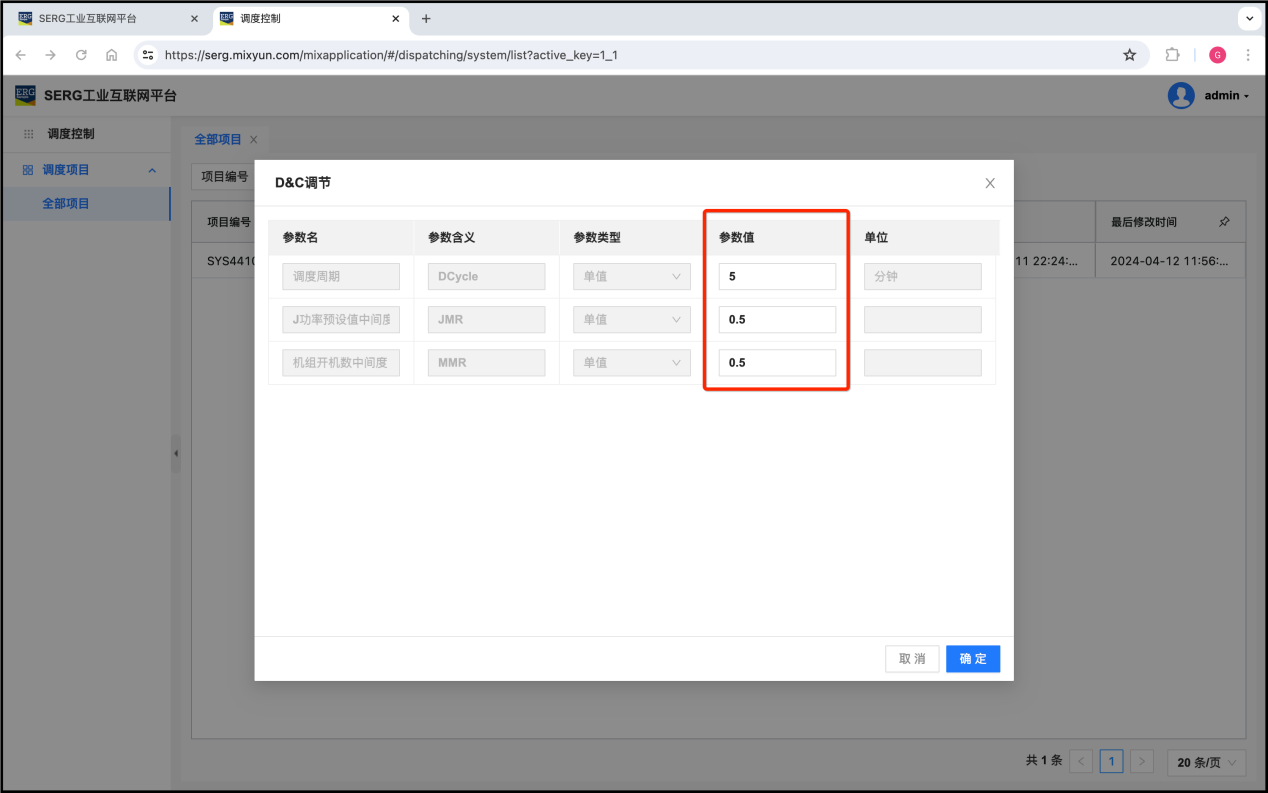 按下 “确定” 后,这个参数值就会在下一个调度周期中生效,这个调节无需把项目停止后重新启动。这是因为 “调度控制” 应用中,对可调控参数有一个 “热加载” 机制。