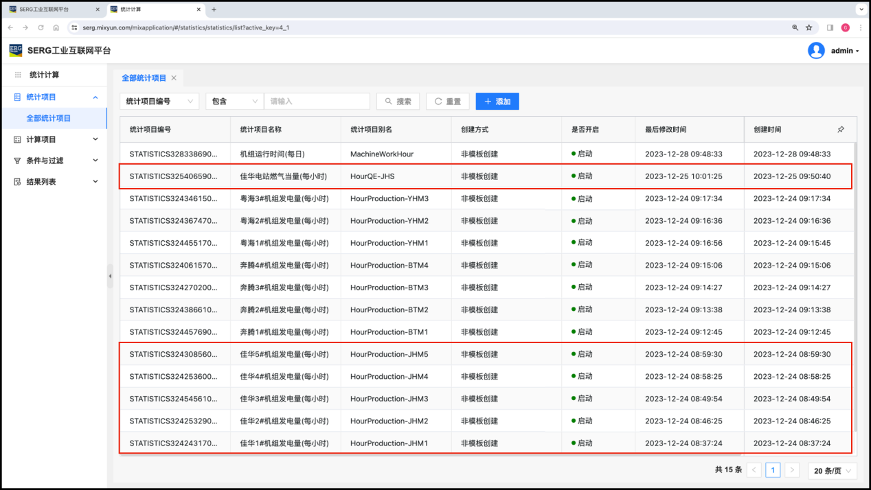 之前在 “统计计算” 中,有过 2个统计项目,一个是电站每小时燃气当量的统计项目,另一个是各机组每小时发电量统计。