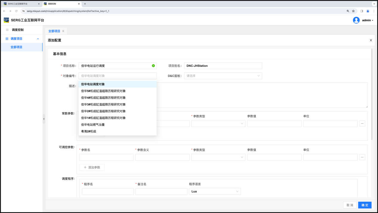 还是以佳华瓦斯电站为例,来介绍 “调度控制” 应用的使用方法。首先,需要对调度系统进行规划,也就是要明确调度需求是什么。