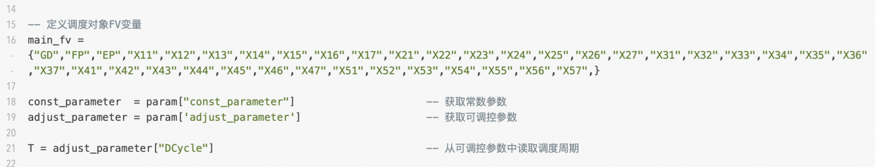 constant_parameter和adjust_parameter是通过param[ ]函数来获取这个调度项目的常数参数和可调控参数。