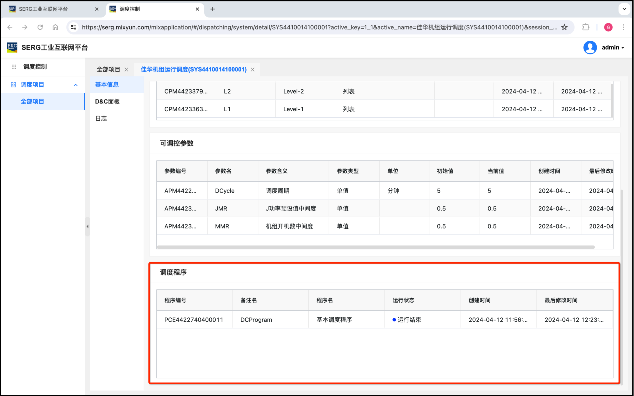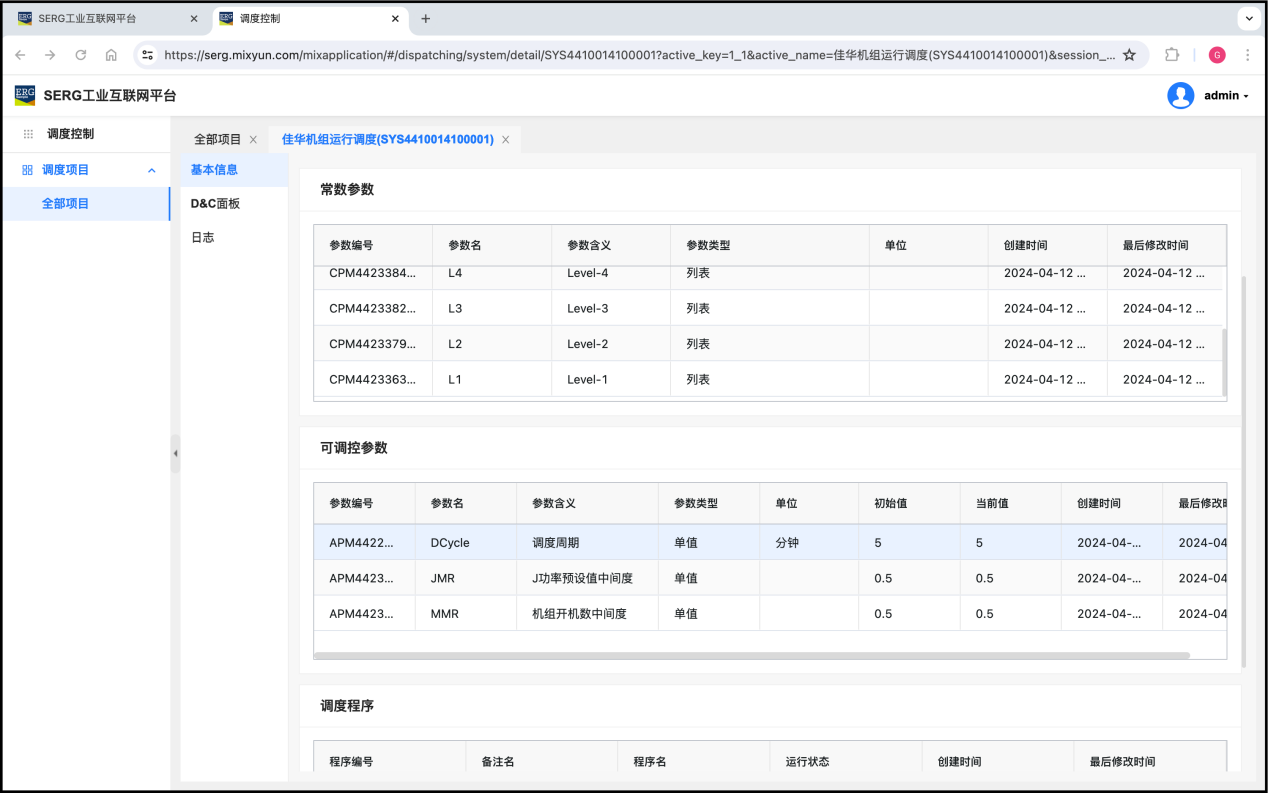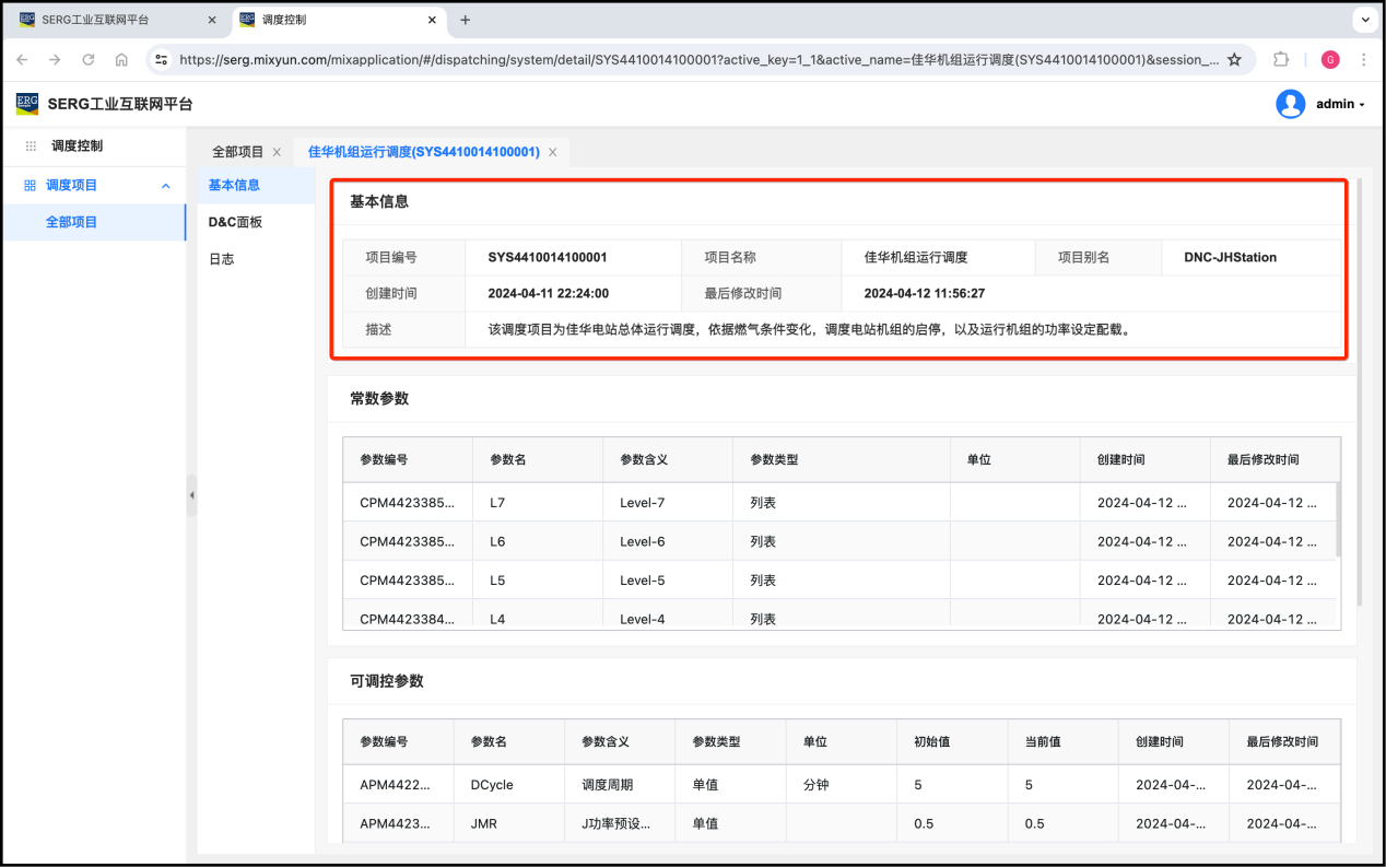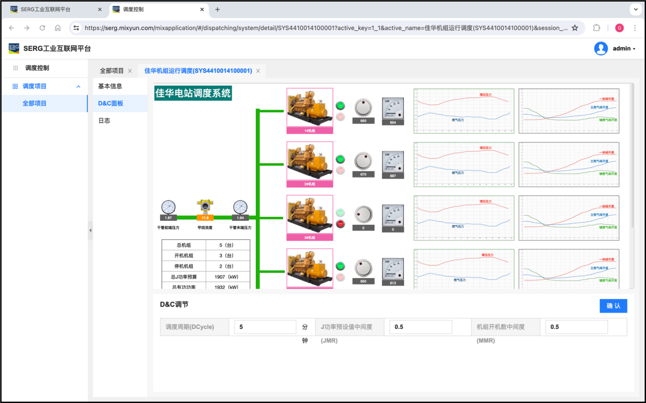 这个画面,是我们重要查看的画面,除了该调度项目(调度对象)的整体状况,还可以在这个地方,对可调控参数进行调整。