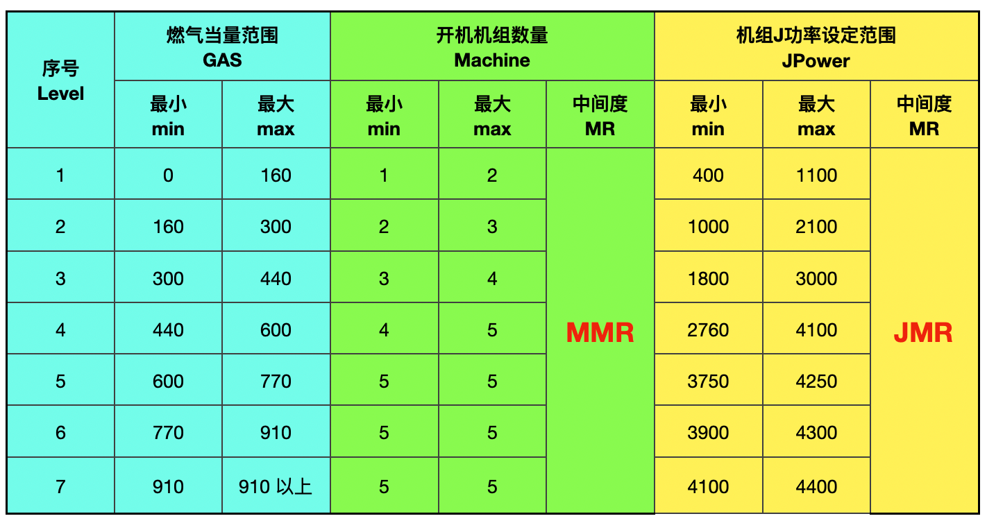 为了简化,不管哪一个 Level,开机机组数量我们使用同一个 “范围中间度”,记为 MMR,而机组 J功率设定范围也使用同一个范围中间度,记为 JMR。
