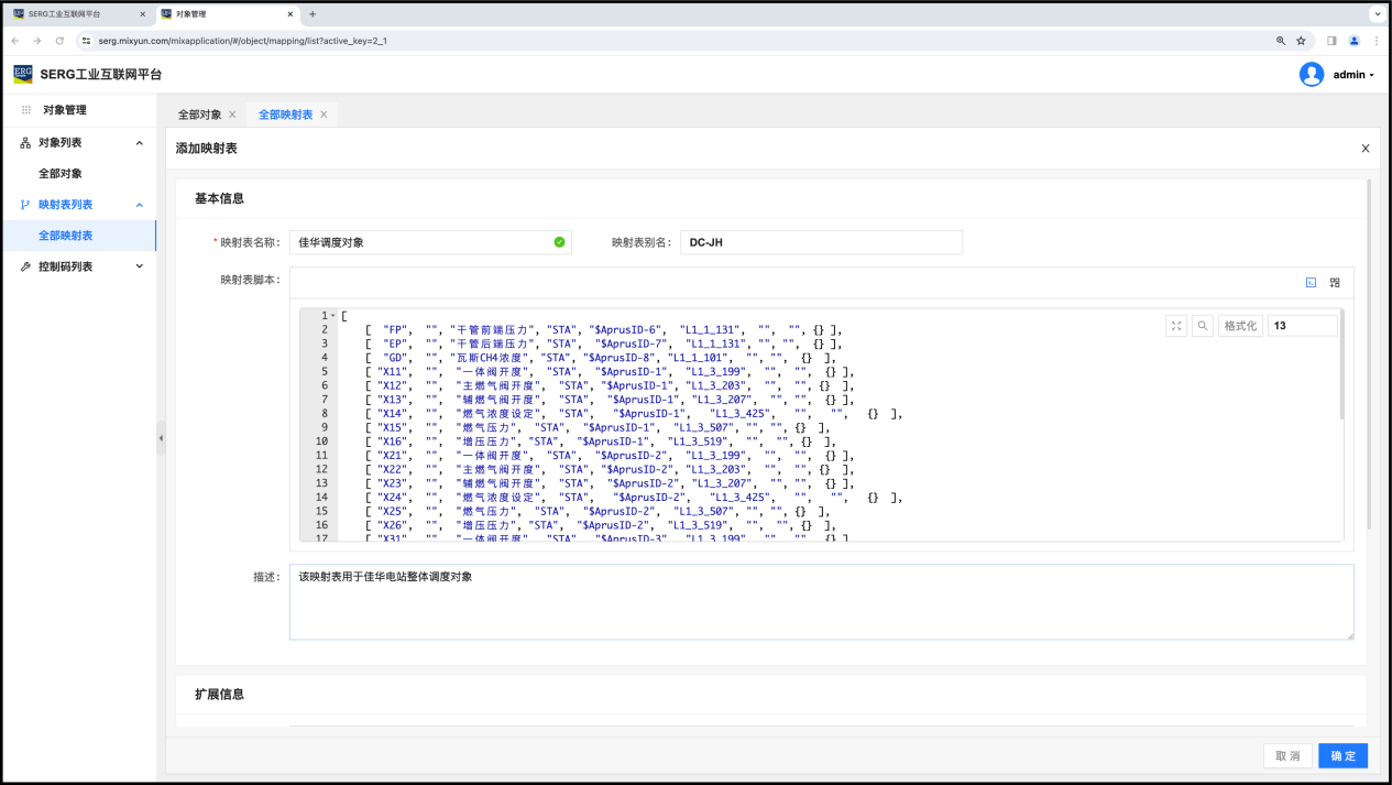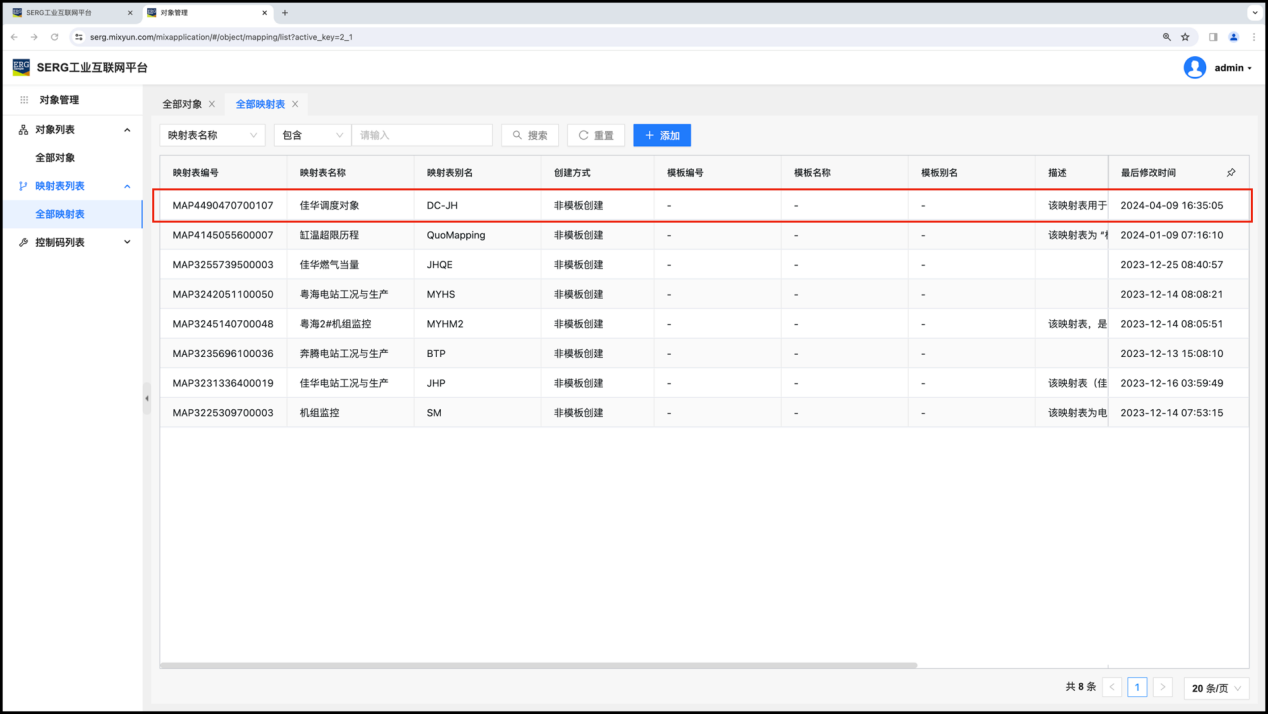 保存后,可以在 “对象管理” 映射表视图列表看到这个映射表。