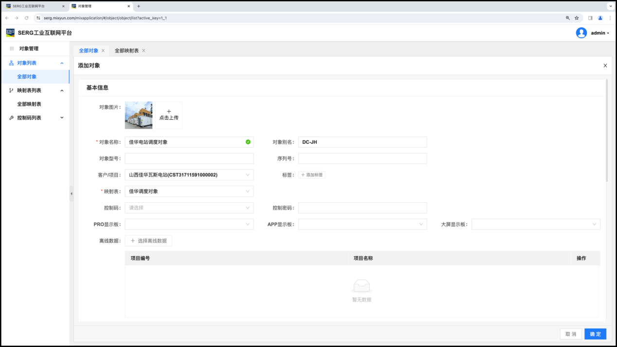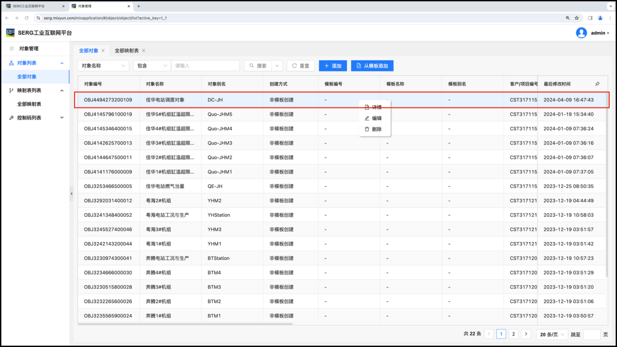 前面的章节中介绍过,每个调度项目(系统)只能有一个对象。在这个项目中,就是我们专门创建的 “佳华调度对象”。