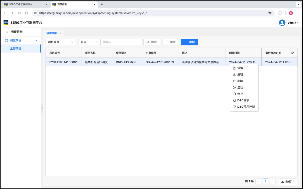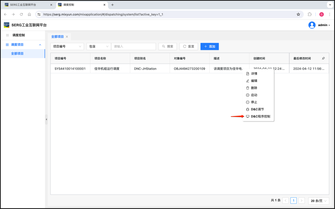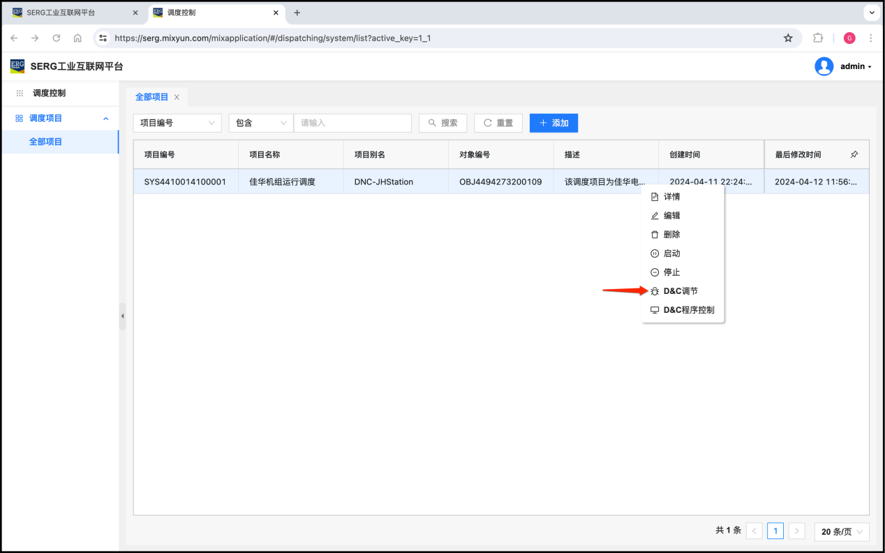 我们可以直接在调度项目的操作菜单上,直接进行 D&C 调节: