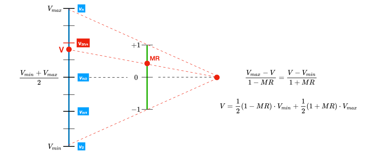 通过中间度MR来计算决策值V的时候,我们经常会遇到这样的问题,就是这个V是一个 “刻度值”,也就是说 ~ 之间,可以最终选择的并不是一个任意连续的值,而是一个等分刻度。