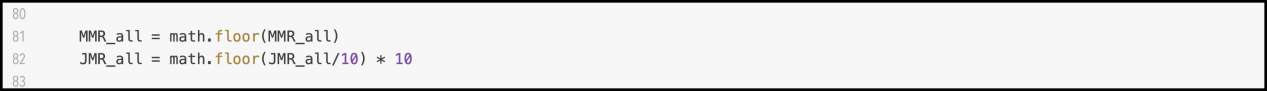 对决策值只能是整数(MMR),或者 10 倍数(JMR)的情况,我们通过 MMR 或 JMR 计算决策值 V 的时候,就是看看算出来 V 接近可选范围的哪一个,就用哪一个。如果是绝对居中,就按 “左规则” 来选择,就是 。