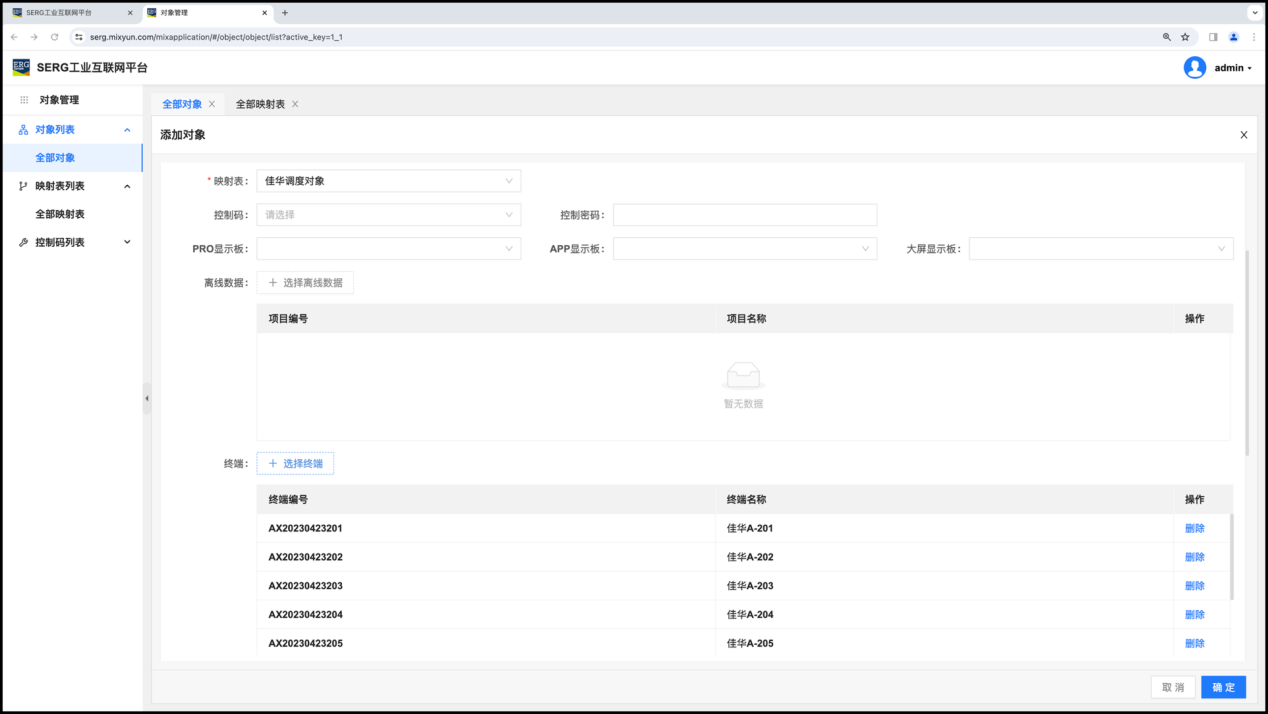 现在回到 “对象管理” 去创建调度对象的映射表: