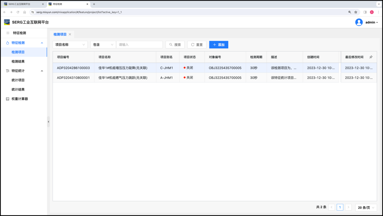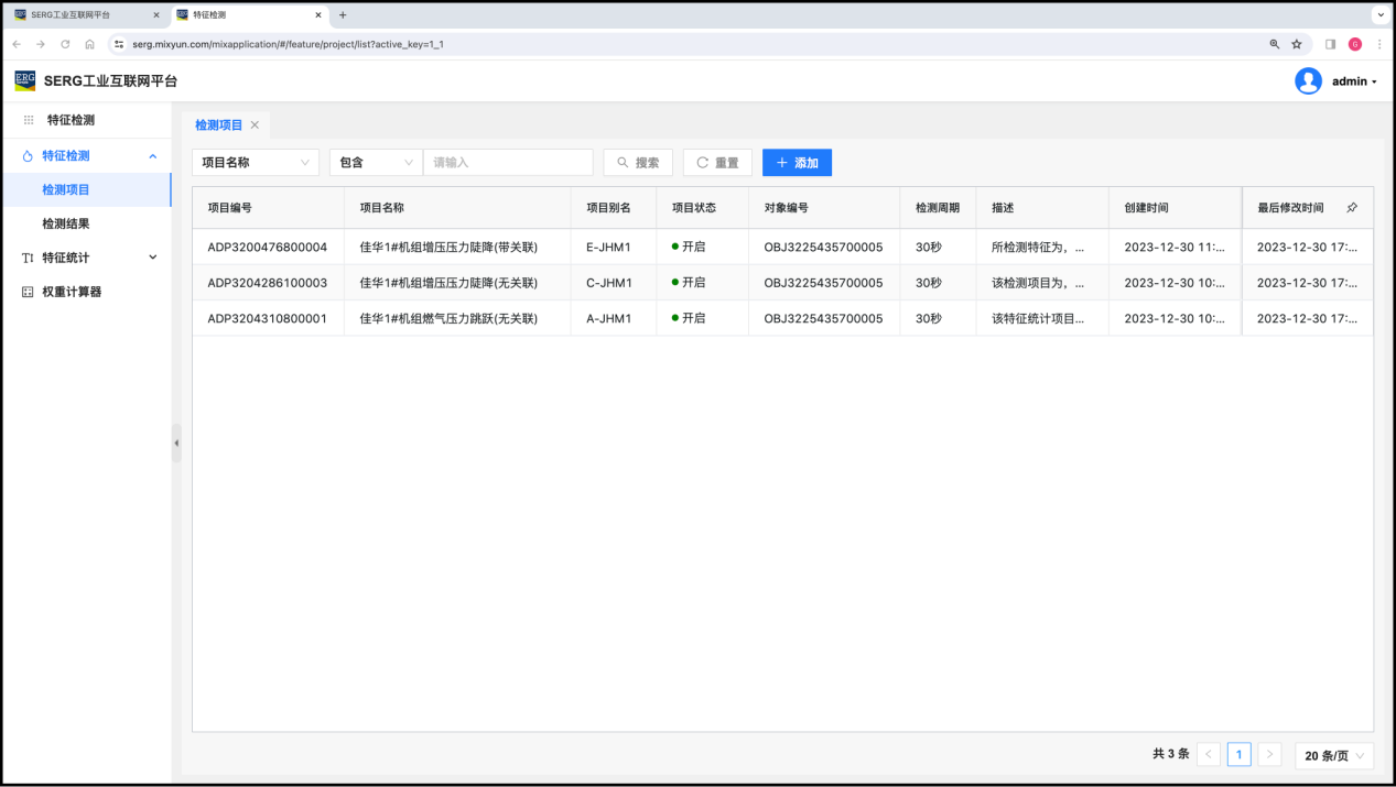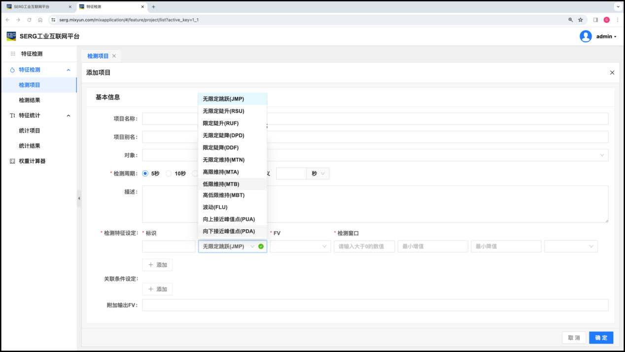 MixIOT “特征检测” 应用可以检测的特征很多,每种特征都有对应的定性和定量。