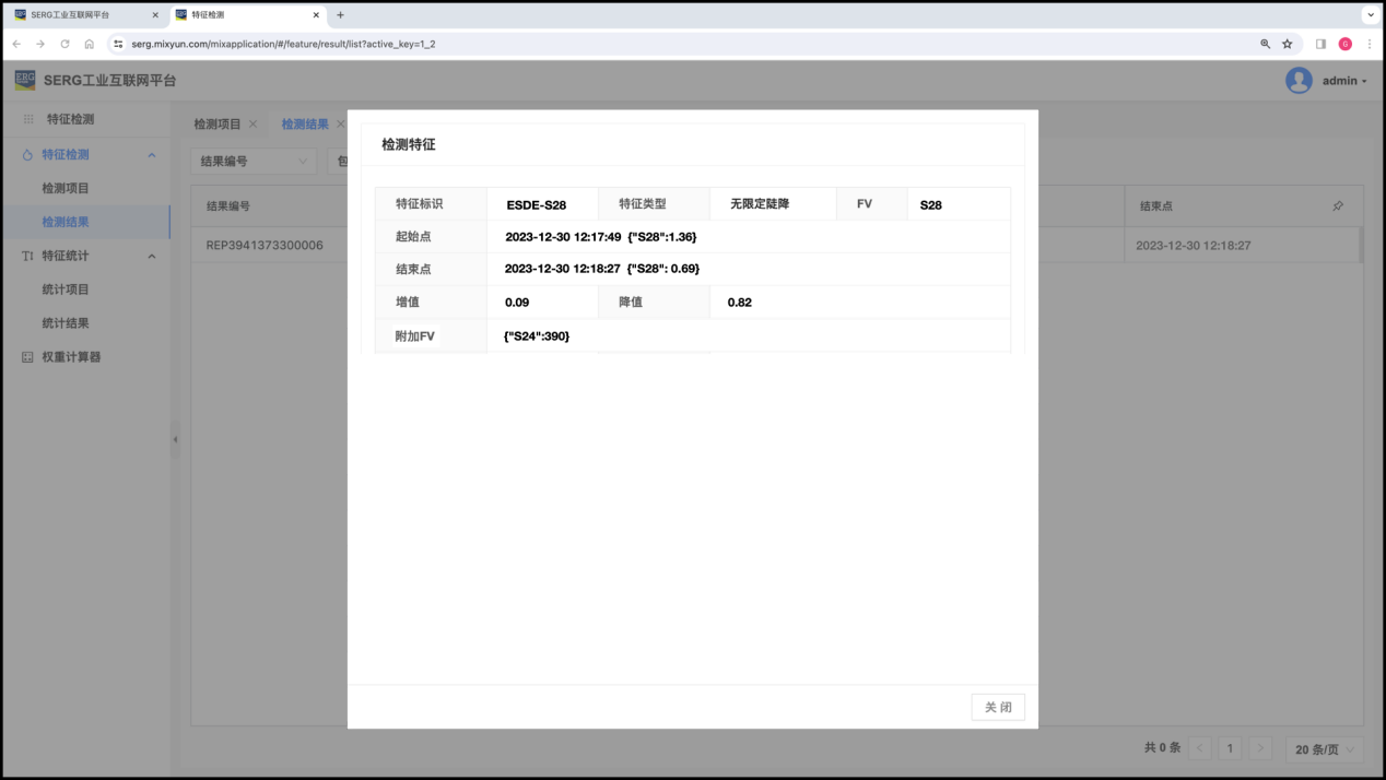 - 特征检测,包括 “检测项目” 和 “检测结果”;