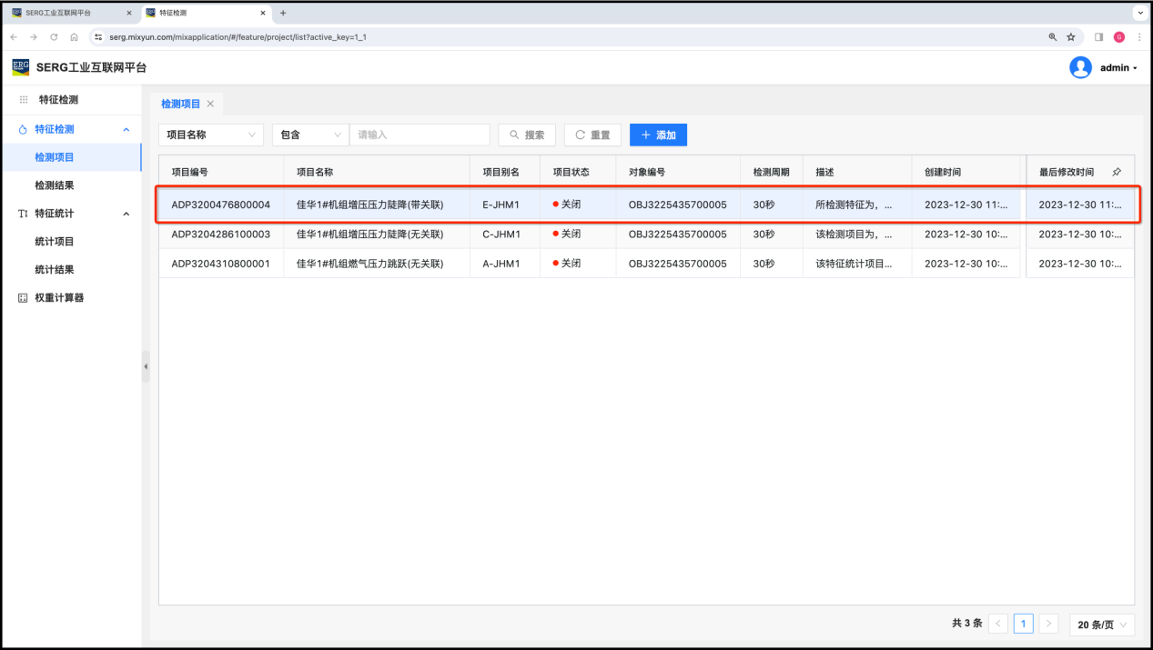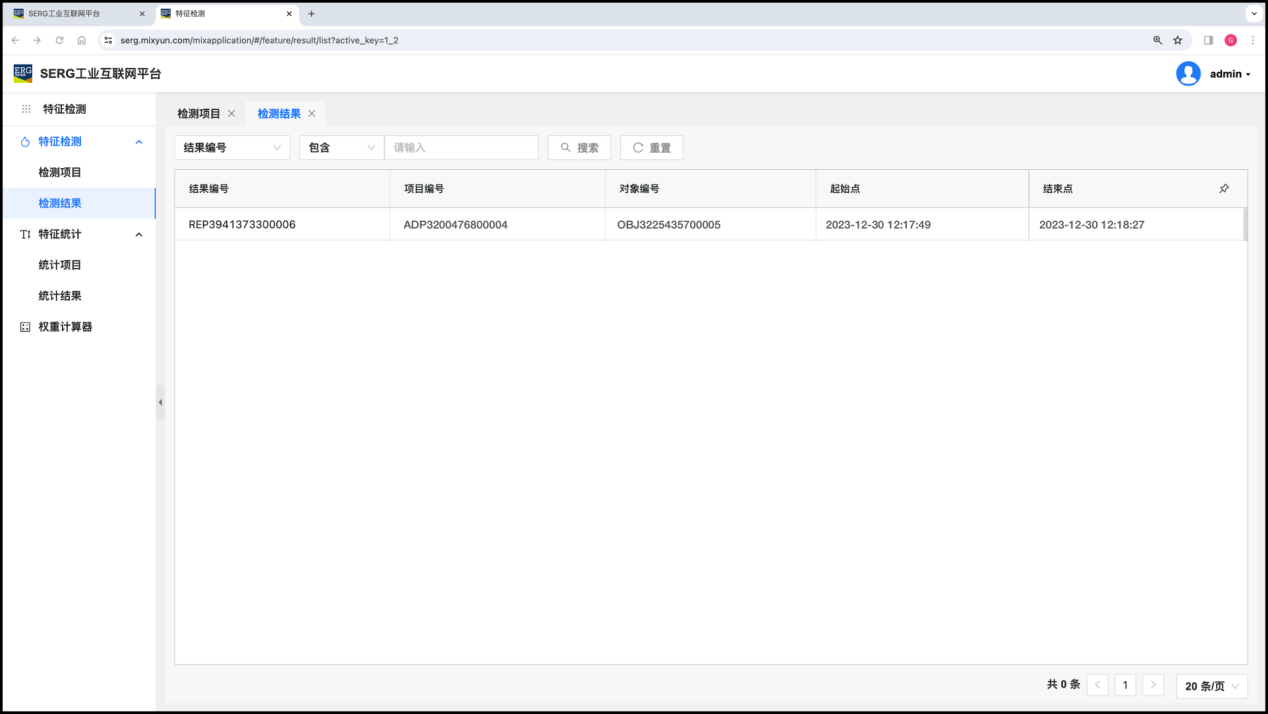 特征检测——检测结果版块,是管理和特征检测项目运行结果的地方。当我们创建的检测项目检测到了被检测特征,则会生成一条结果,表示某项目所检测的特征成立。这些检测结果可以被其他应用来使用。