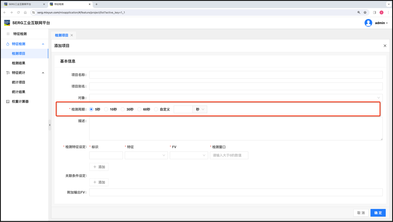 特征检测的周期,是多长时间进行一次特征检测。也就是说,特征检测项目并不是时时刻刻都在检测,而是按设置的检测周期去检测。一般来说,如果是连续不间断的检测,那就要把检测周期定得不要长于检测窗口。