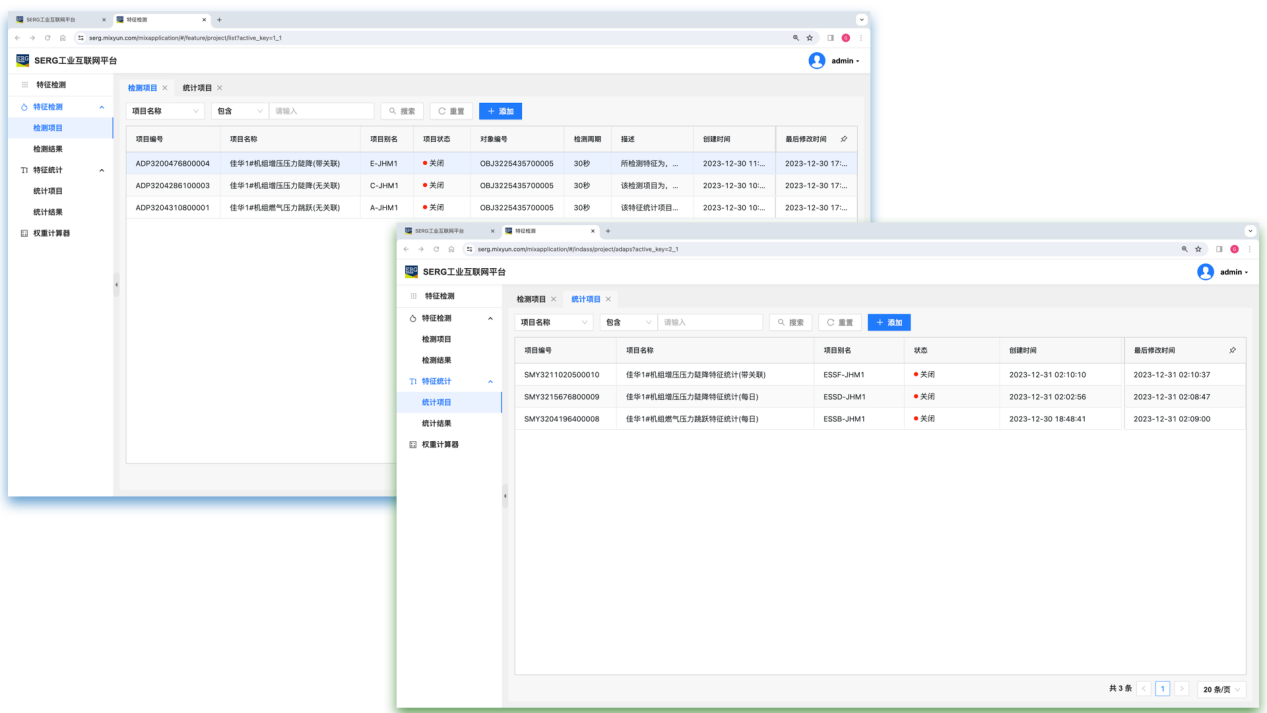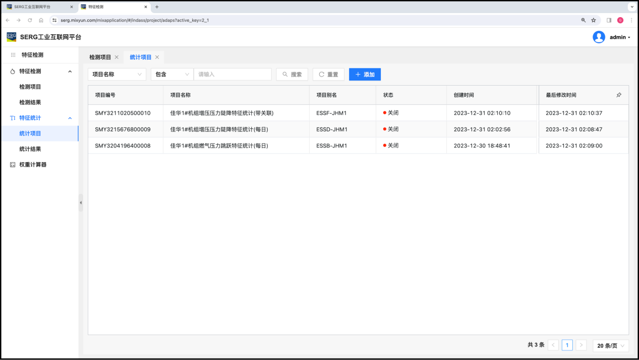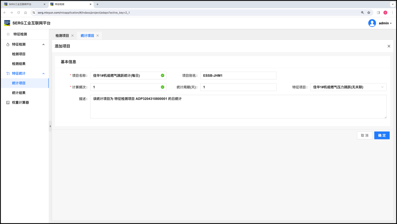 这样,佳华电站1#机组的3个特征检测项目以及3个特征统计项目,都创建完成了。