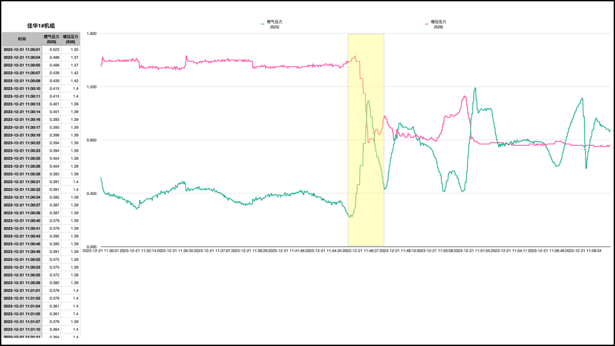 在实际机组运行的长期观察中,技术人员发现,一旦在某个时段出现 “燃气压力陡升及增压压力陡降” 的情况,机组就一定就会出现一些问题: