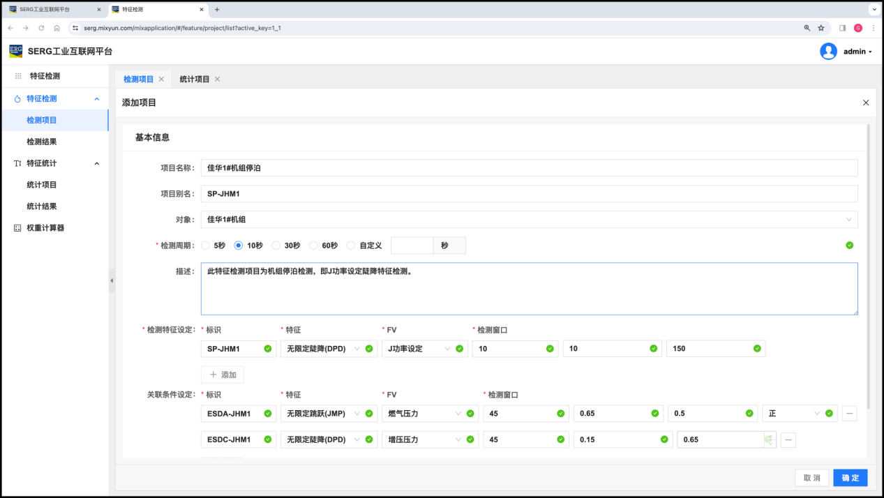 被检测FV是 S24(J功率设定)检测窗口是 10秒;而 S25(燃气压力)和 S28(增压压力)是作为关联因素条件,这个关联特征的检测窗口是45秒。