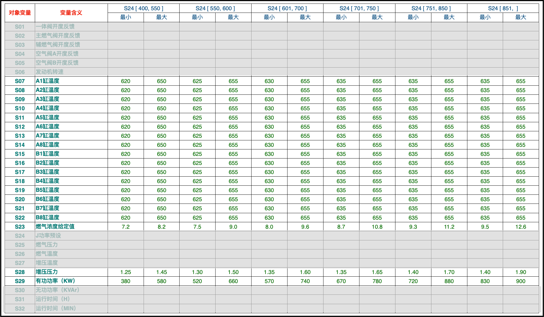 按设计标准,可以把 S24(J功率预设)分成几个区间,这几个区间里面,机组其他的参数的期望范围是有所不同的。